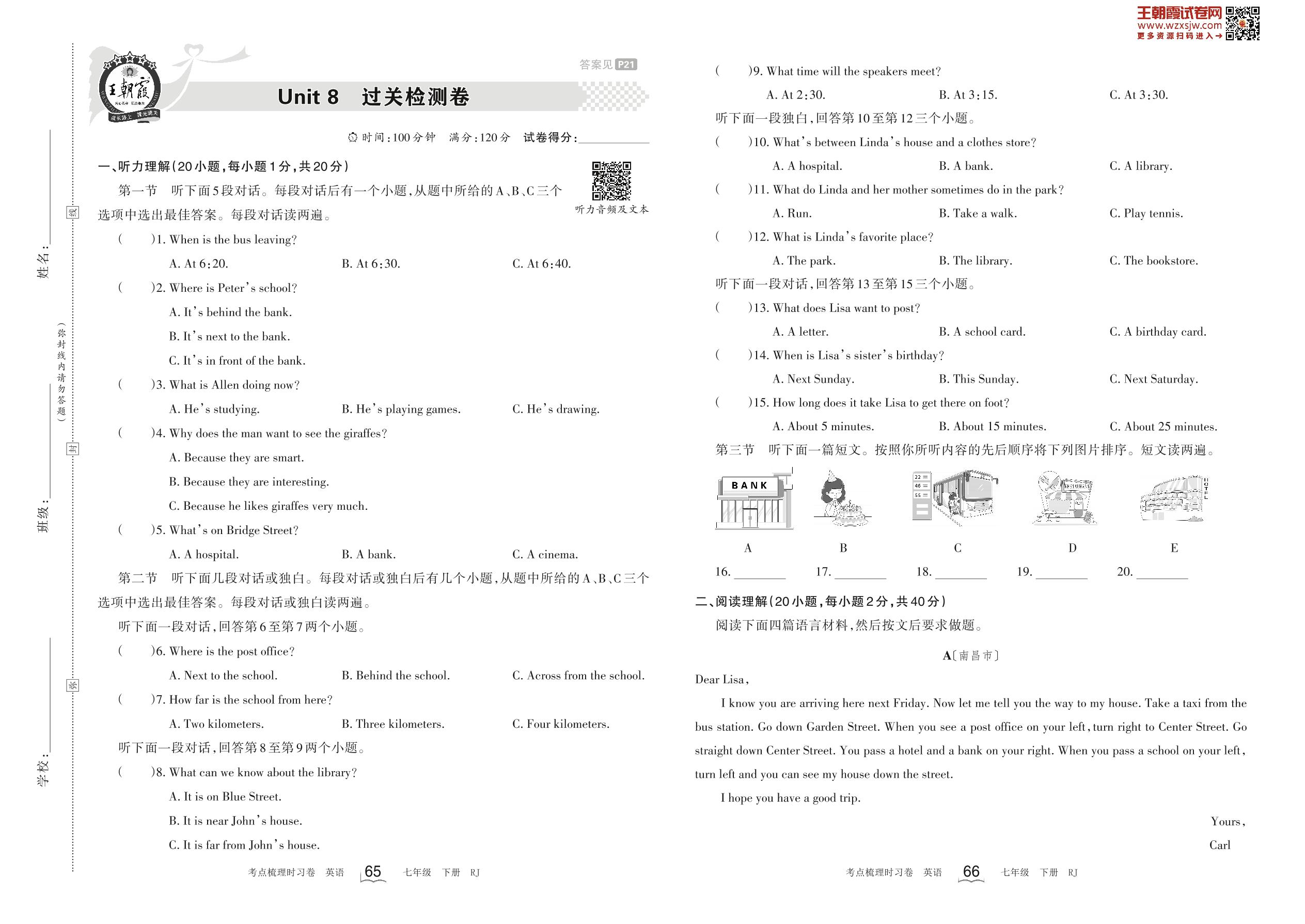 七年级英语人教版下册单元卷