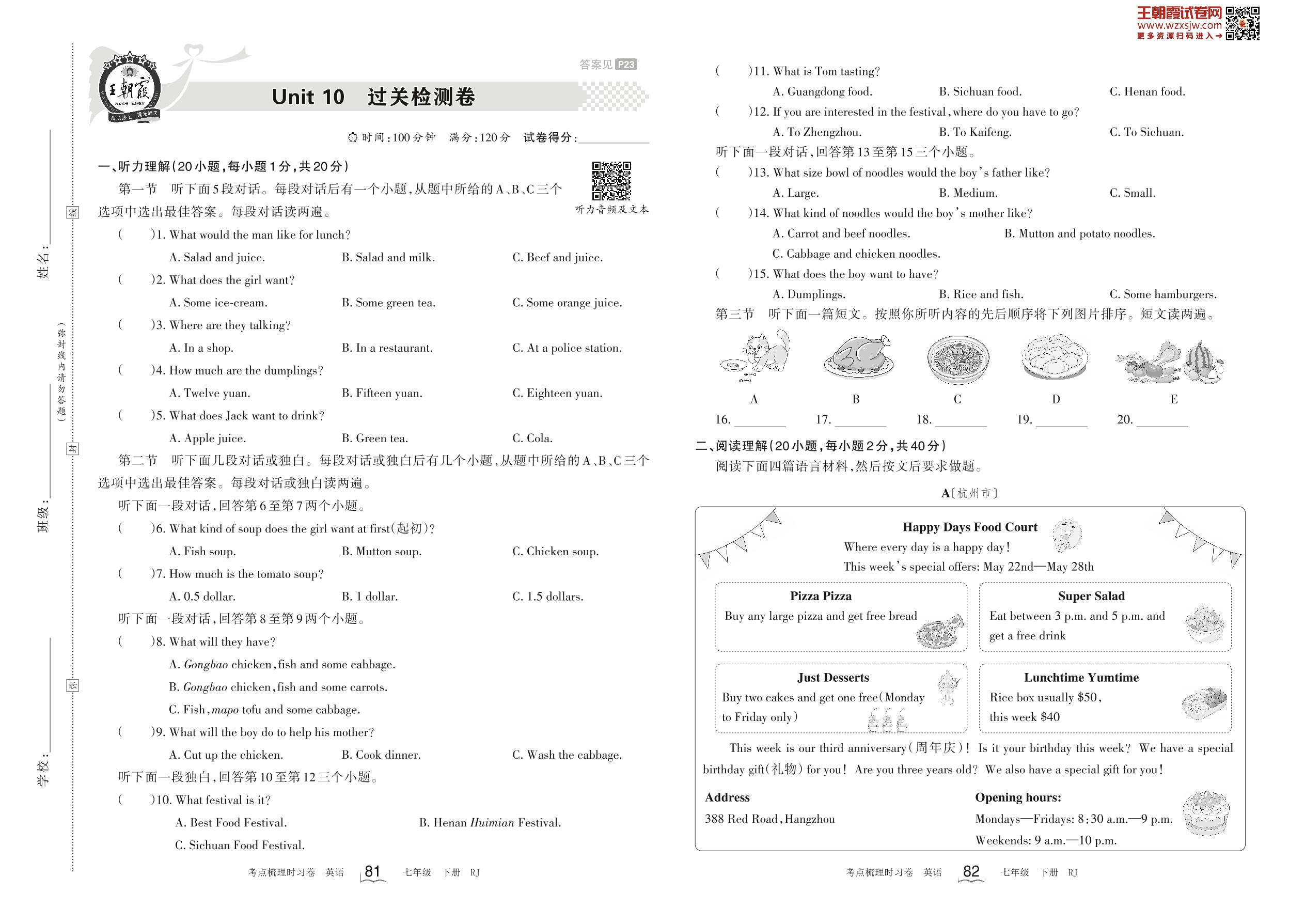 七年级英语人教版下册单元卷