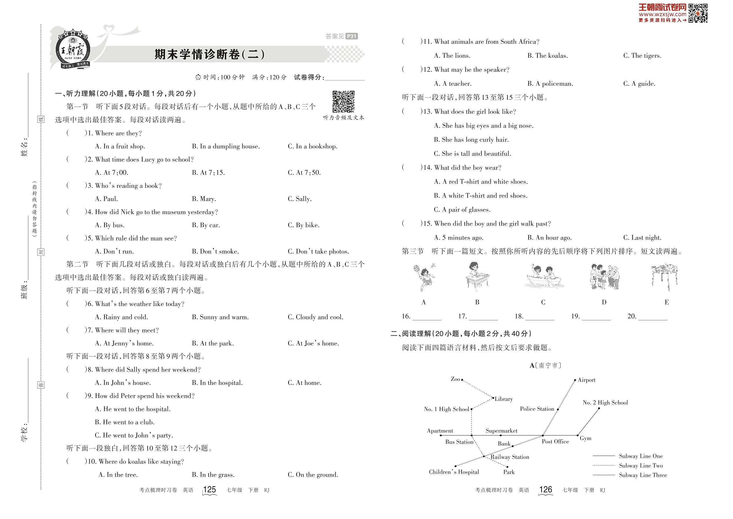 2023下册七年级英语人教版 期末学情诊断卷(二)_R230220091939997