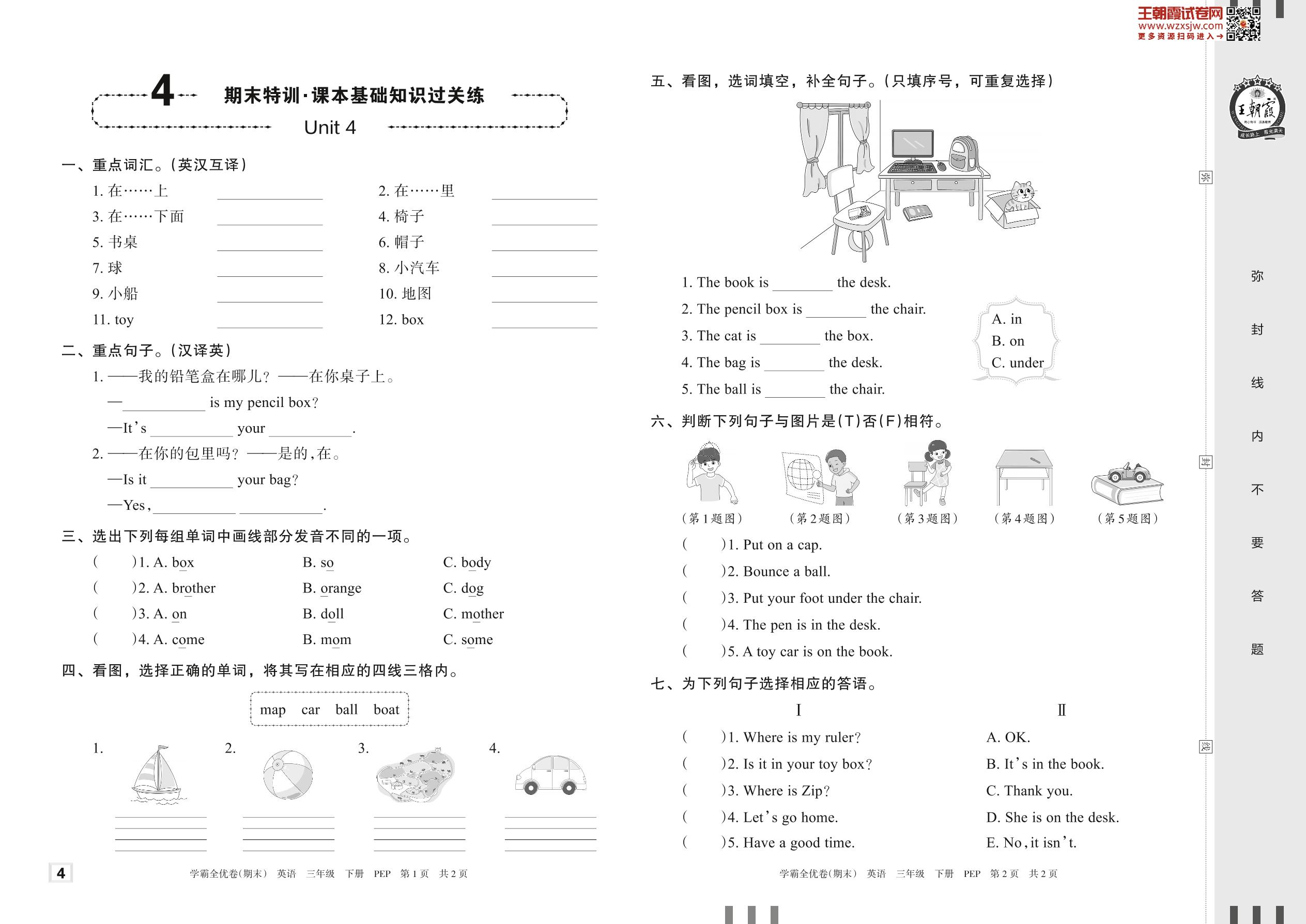 2023下册三年级英语人教PEP版 4 期末特训·课本基础知识过关练——Unit 4