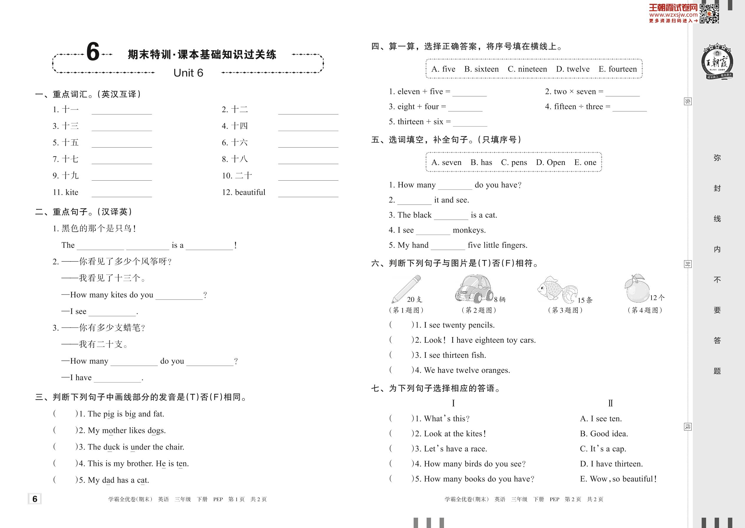 2023下册三年级英语人教PEP版 6 期末特训·课本基础知识过关练——Unit 6