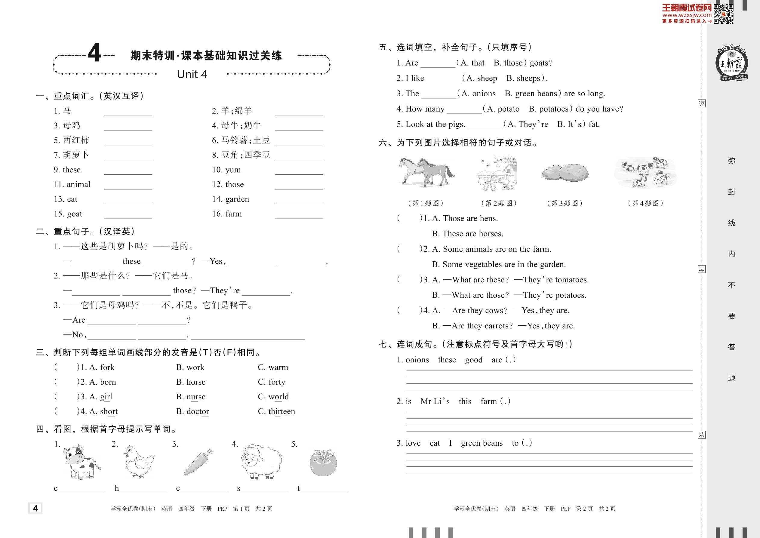 2023下册四年级英语人教PEP版 4 期末特训·课本基础知识过关练——Unit 4