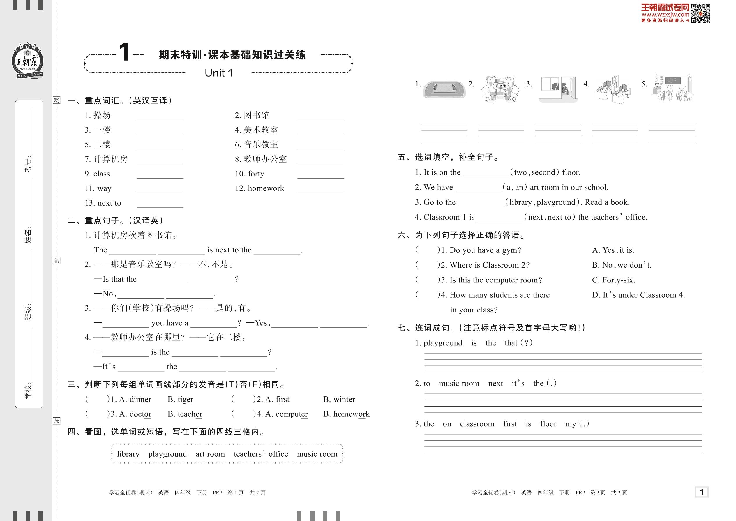 2023下册四年级英语人教PEP版 1 期末特训·课本基础知识过关练——Unit 1
