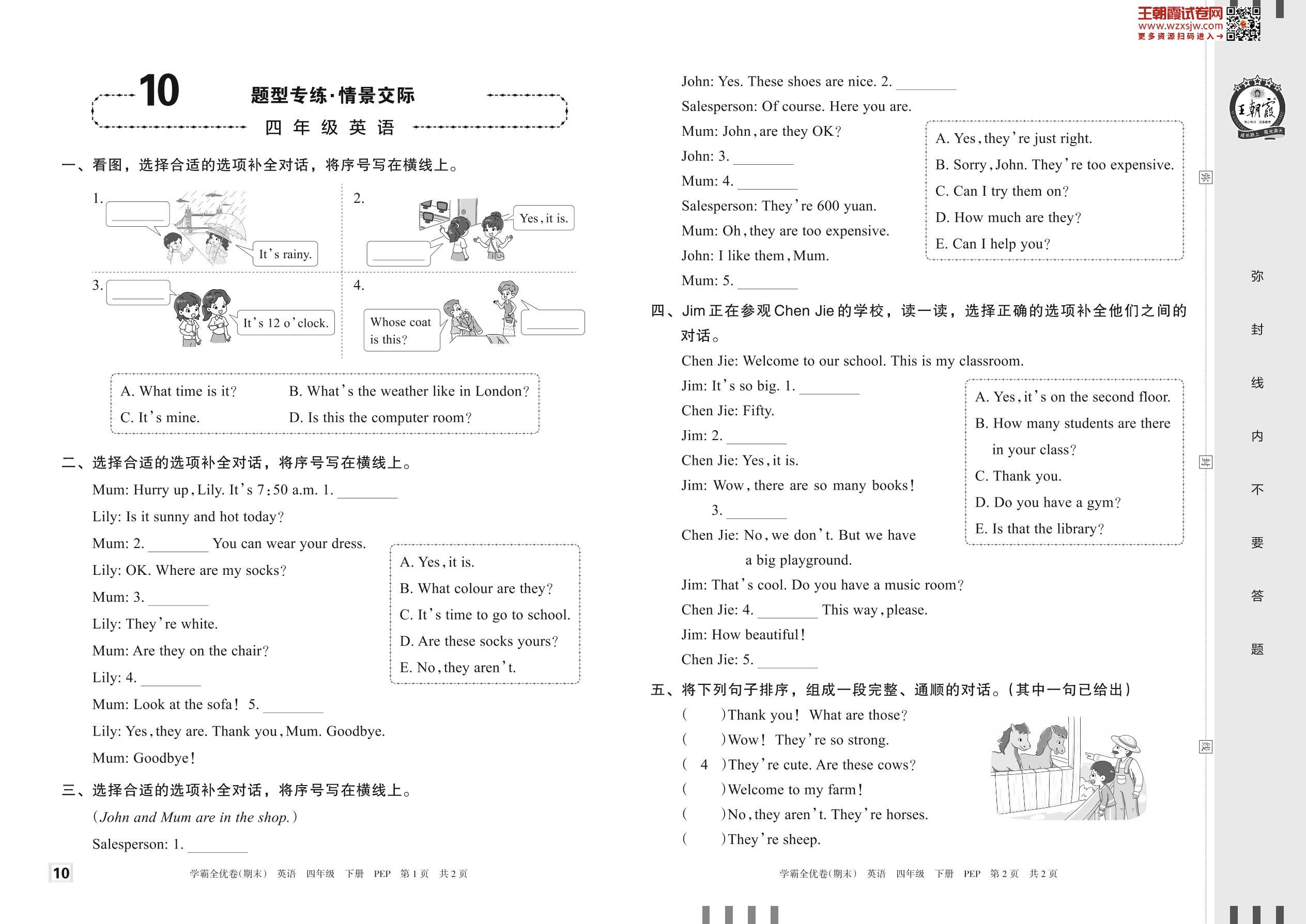 2023下册四年级英语人教PEP版 10 题型专练·情景交际