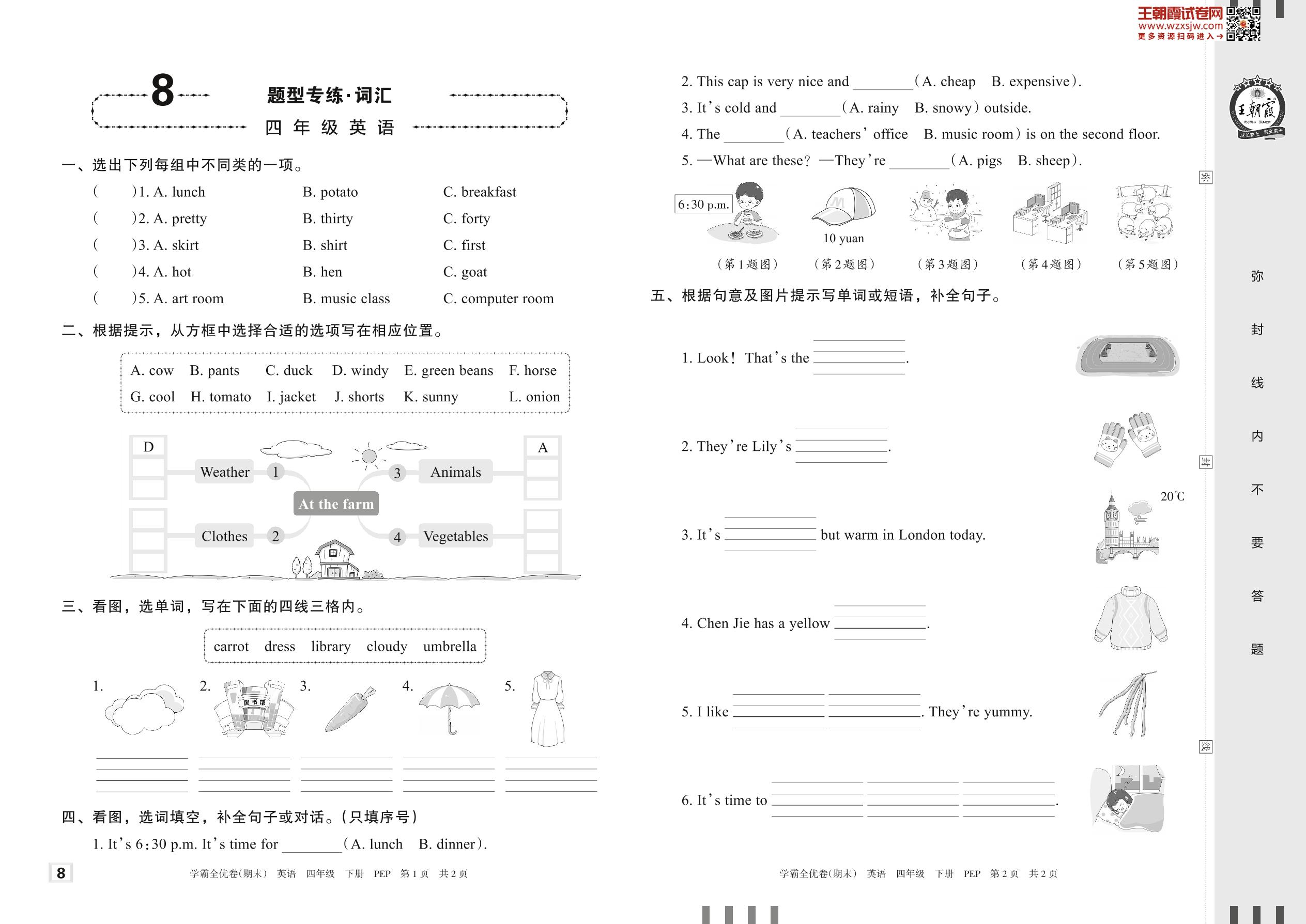 2023下册四年级英语人教PEP版 8 题型专练·词汇