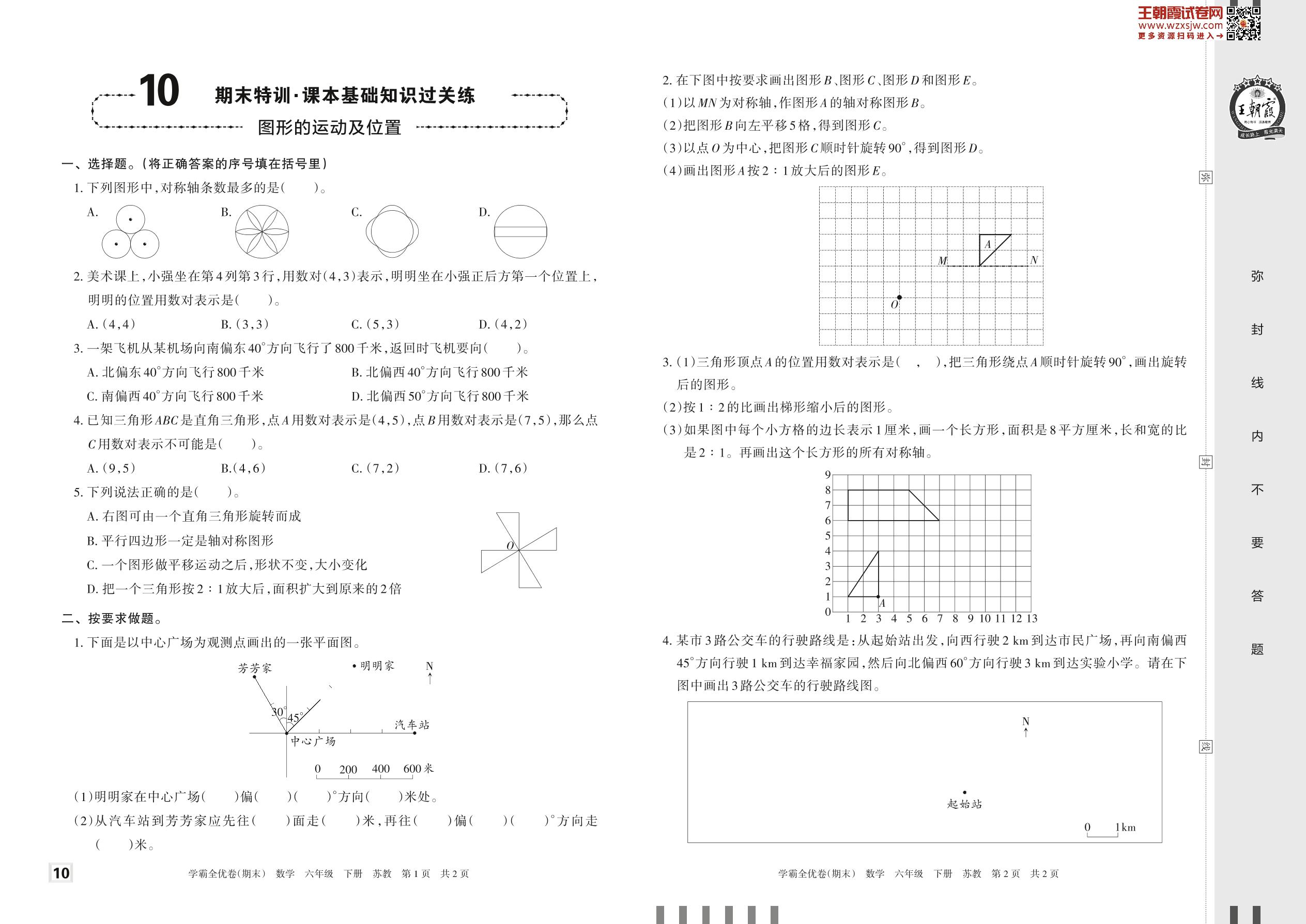 2023下册六年级数学苏教版 10 期末特训·课本基础知识过关练——图形的运动及位置