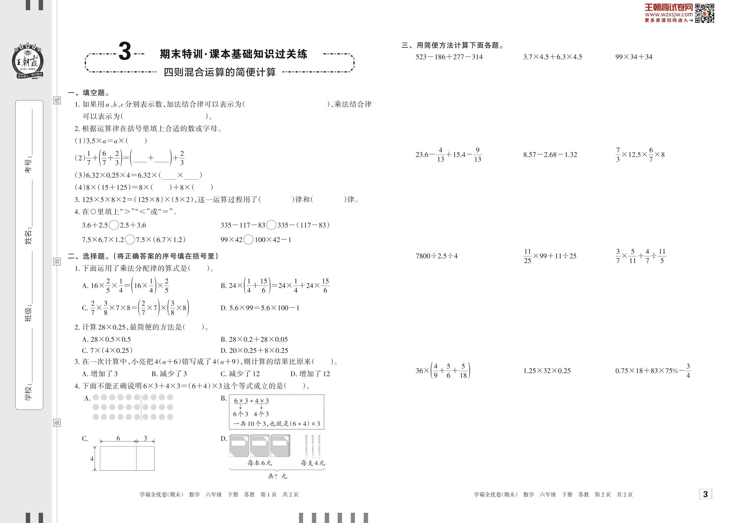 2023下册六年级数学苏教版 3 期末特训·课本基础知识过关练——四则混合运算的简便计算