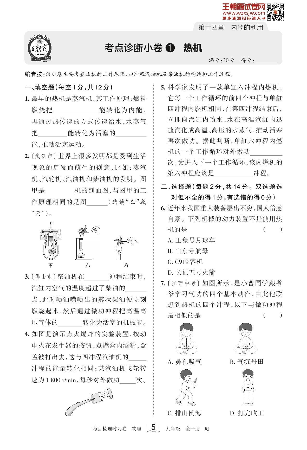 2023-2024学年九年级物理人教版 第十四章 考点诊断小卷1 热机