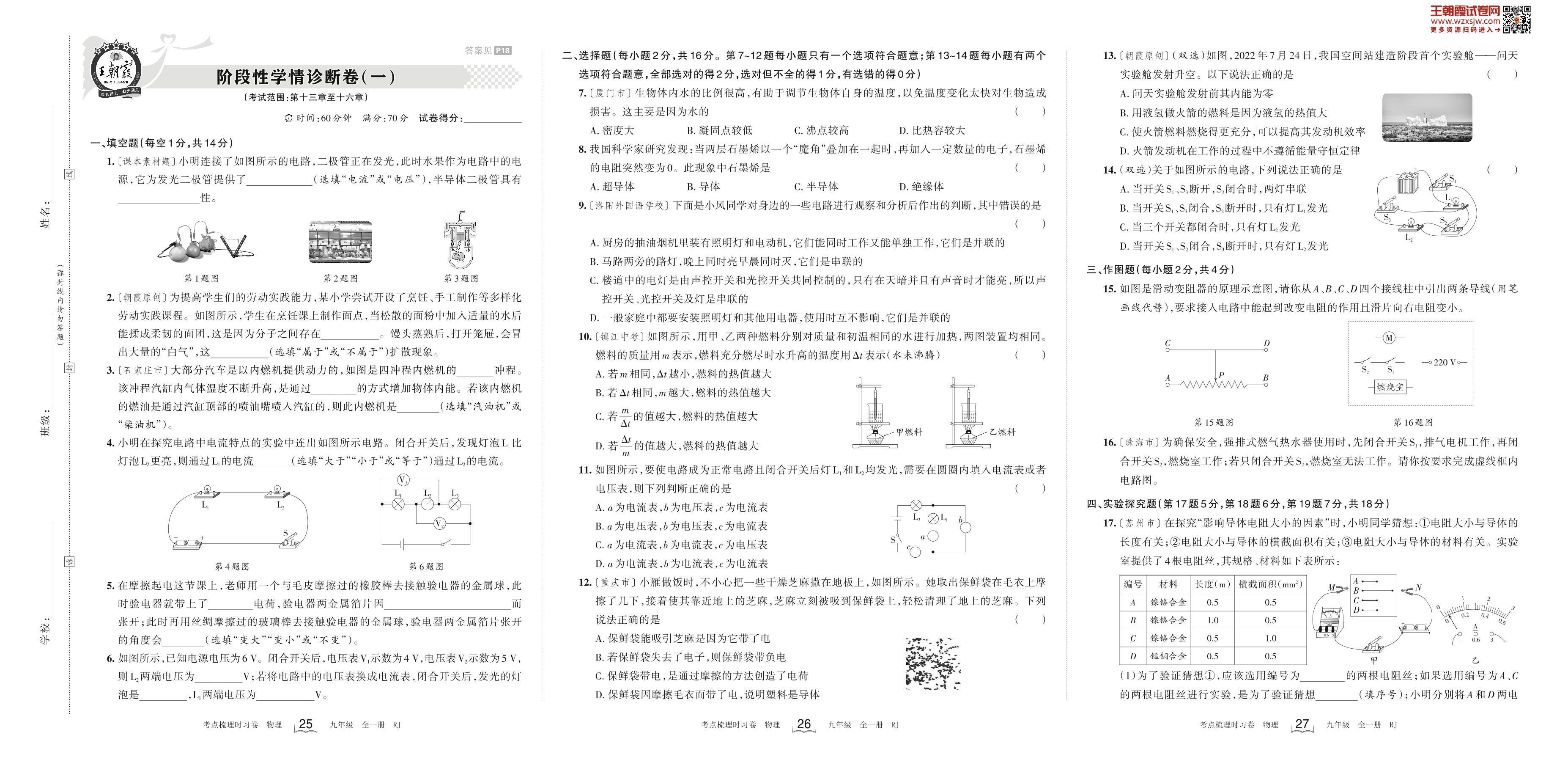 2023-2024学年九年级物理人教版 阶段性学情诊断卷(一)