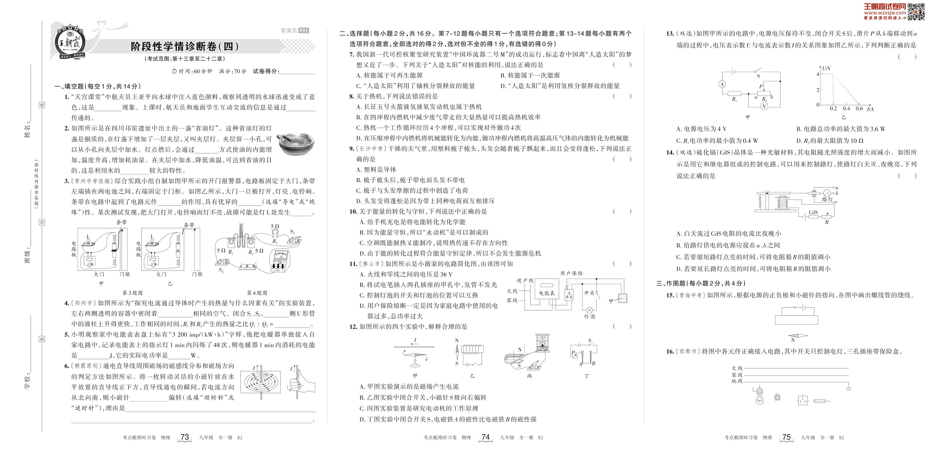 2023-2024学年九年级物理人教版 阶段性学情诊断卷(四)