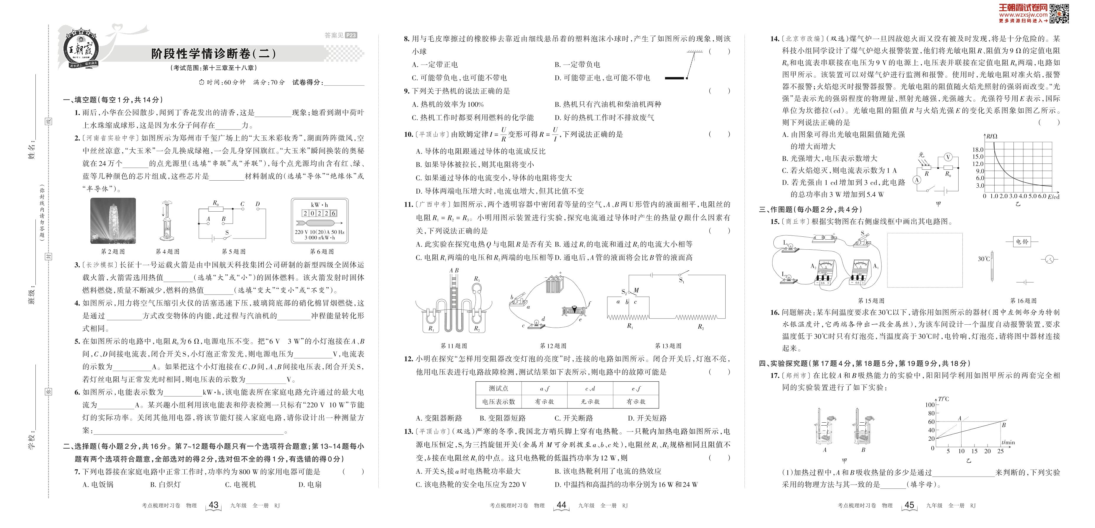 2023-2024学年九年级物理人教版 阶段性学情诊断卷(二)