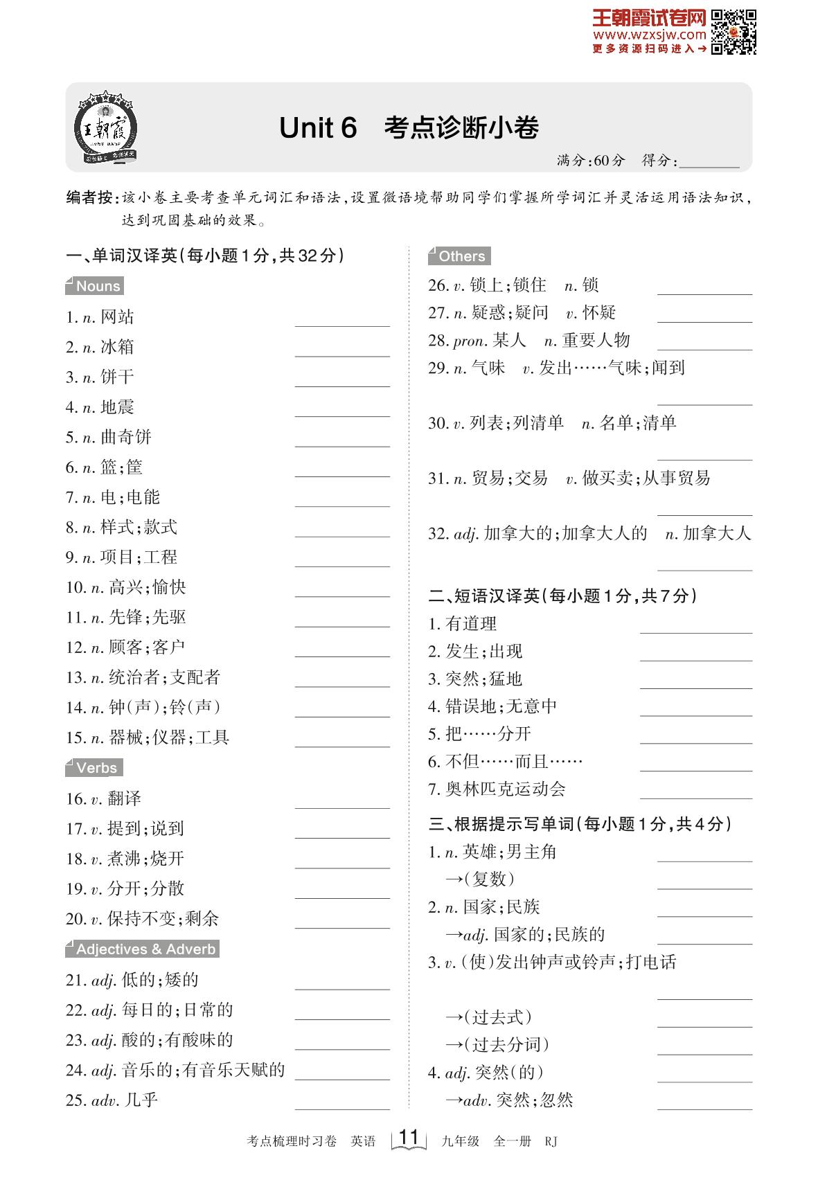 2023-2024学年九年级英语人教版 Unit 6 考点诊断小卷