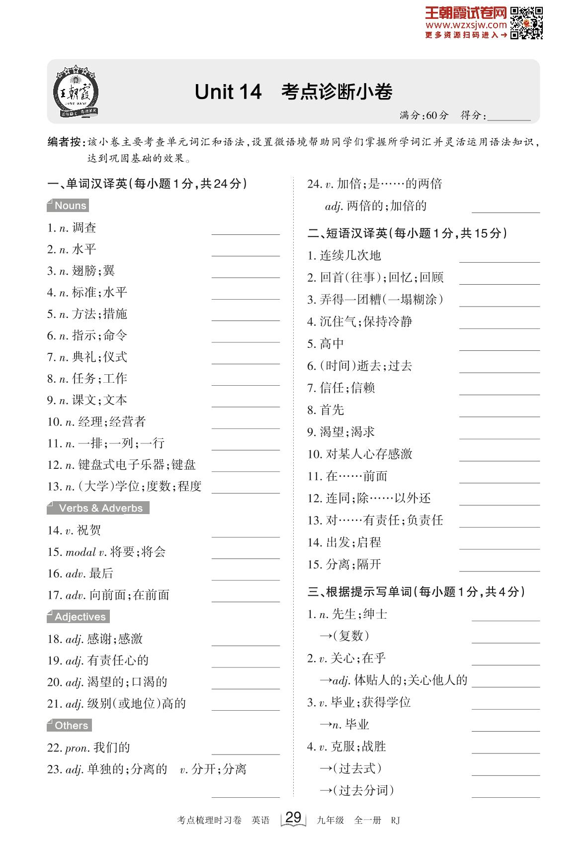 2023-2024学年九年级英语人教版 Unit 14 考点诊断小卷