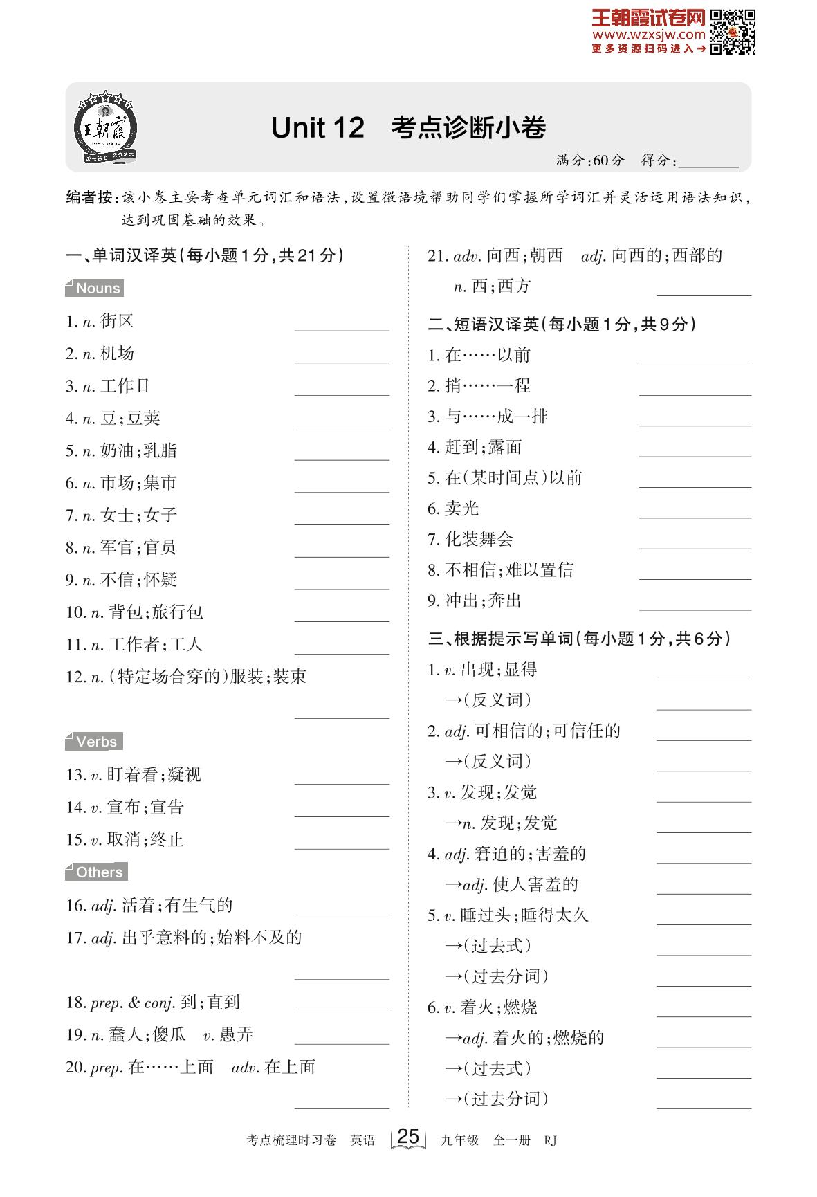 2023-2024学年九年级英语人教版 Unit 12 考点诊断小卷