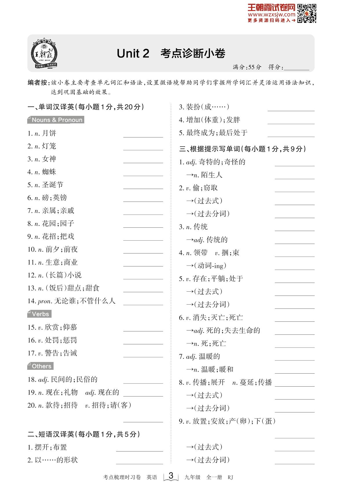 2023-2024学年九年级英语人教版 Unit 2 考点诊断小卷