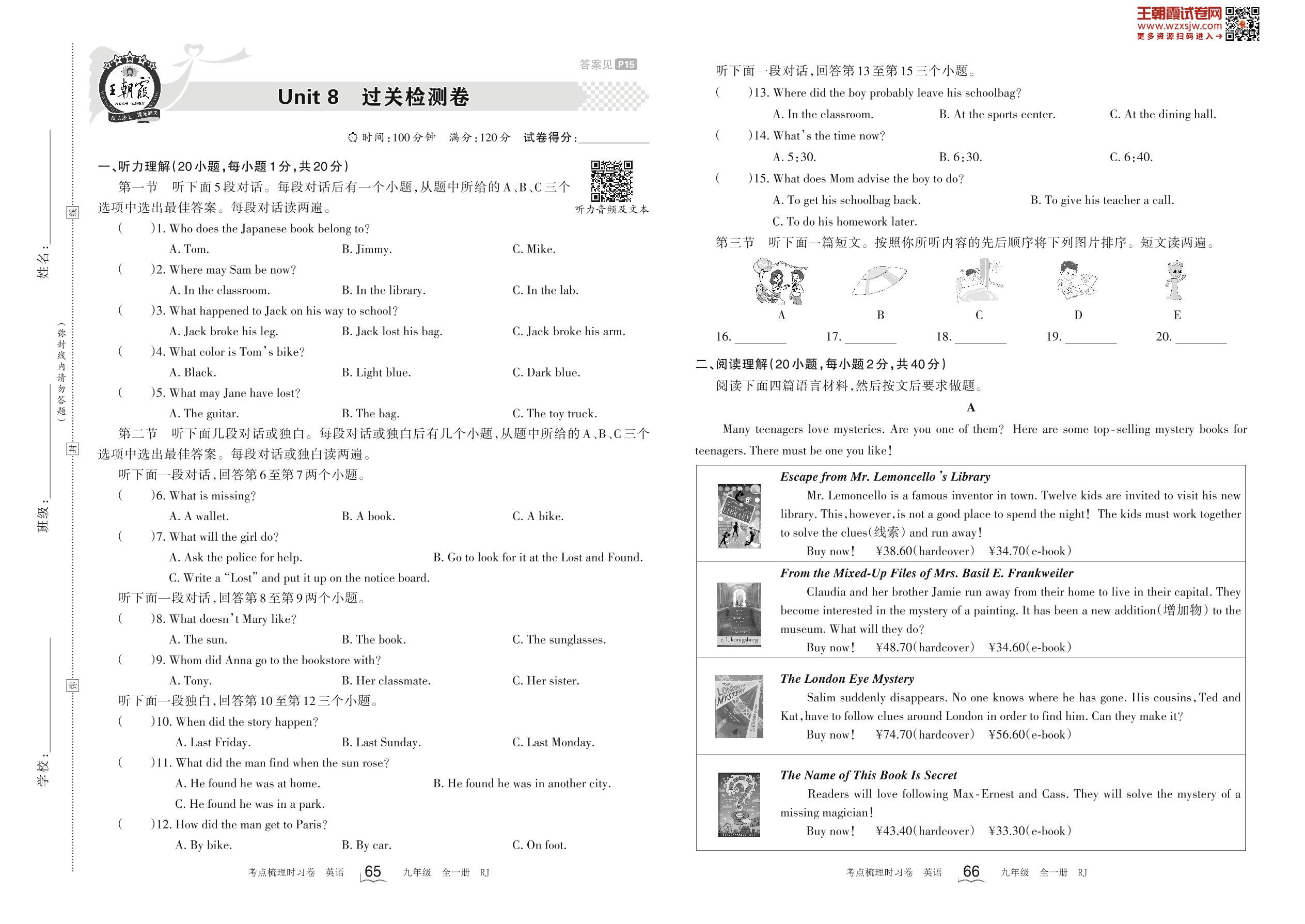 2023-2024学年九年级英语人教版 Unit 8 过关检测卷