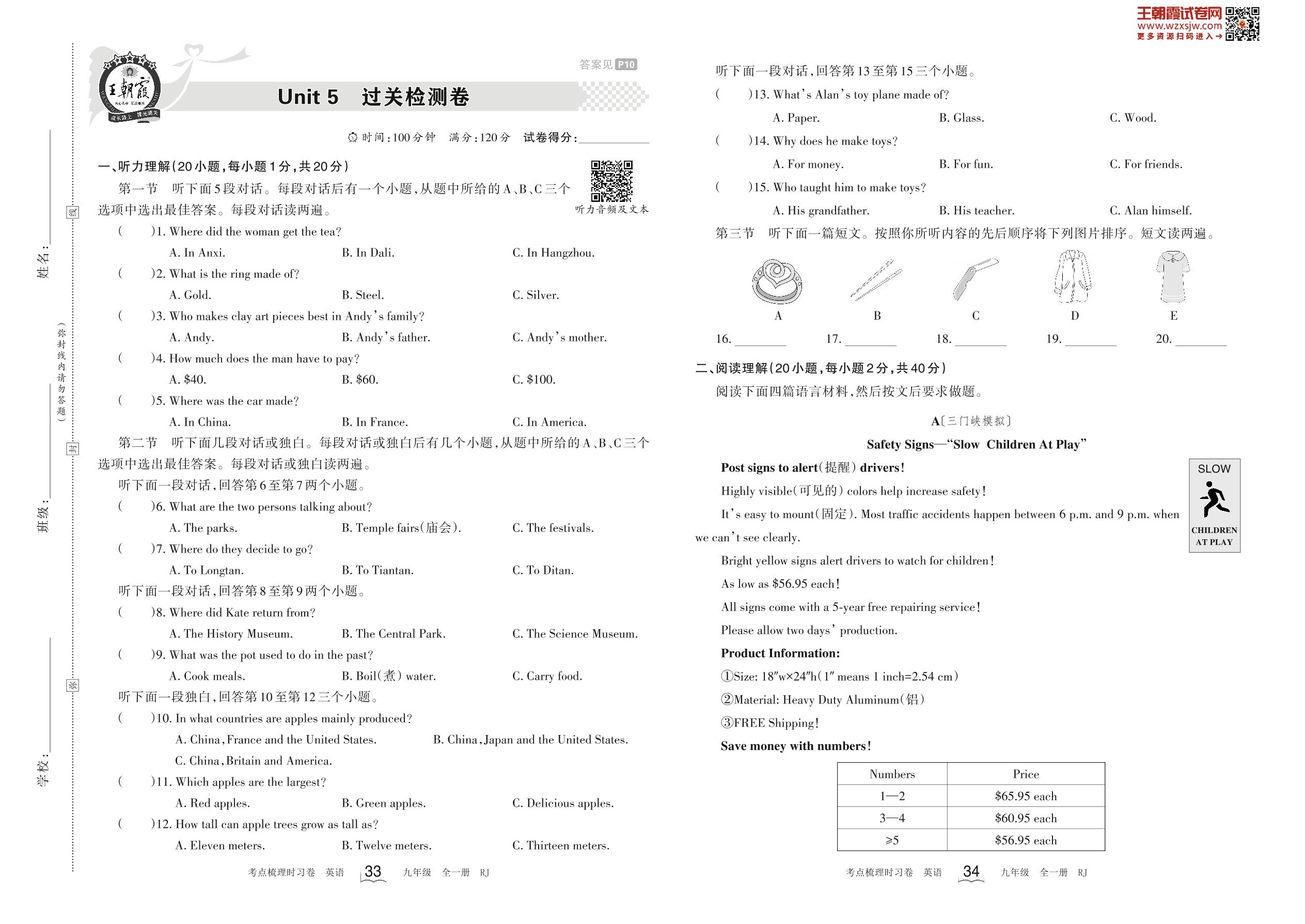 2023-2024学年九年级英语人教版 Unit 5 过关检测卷