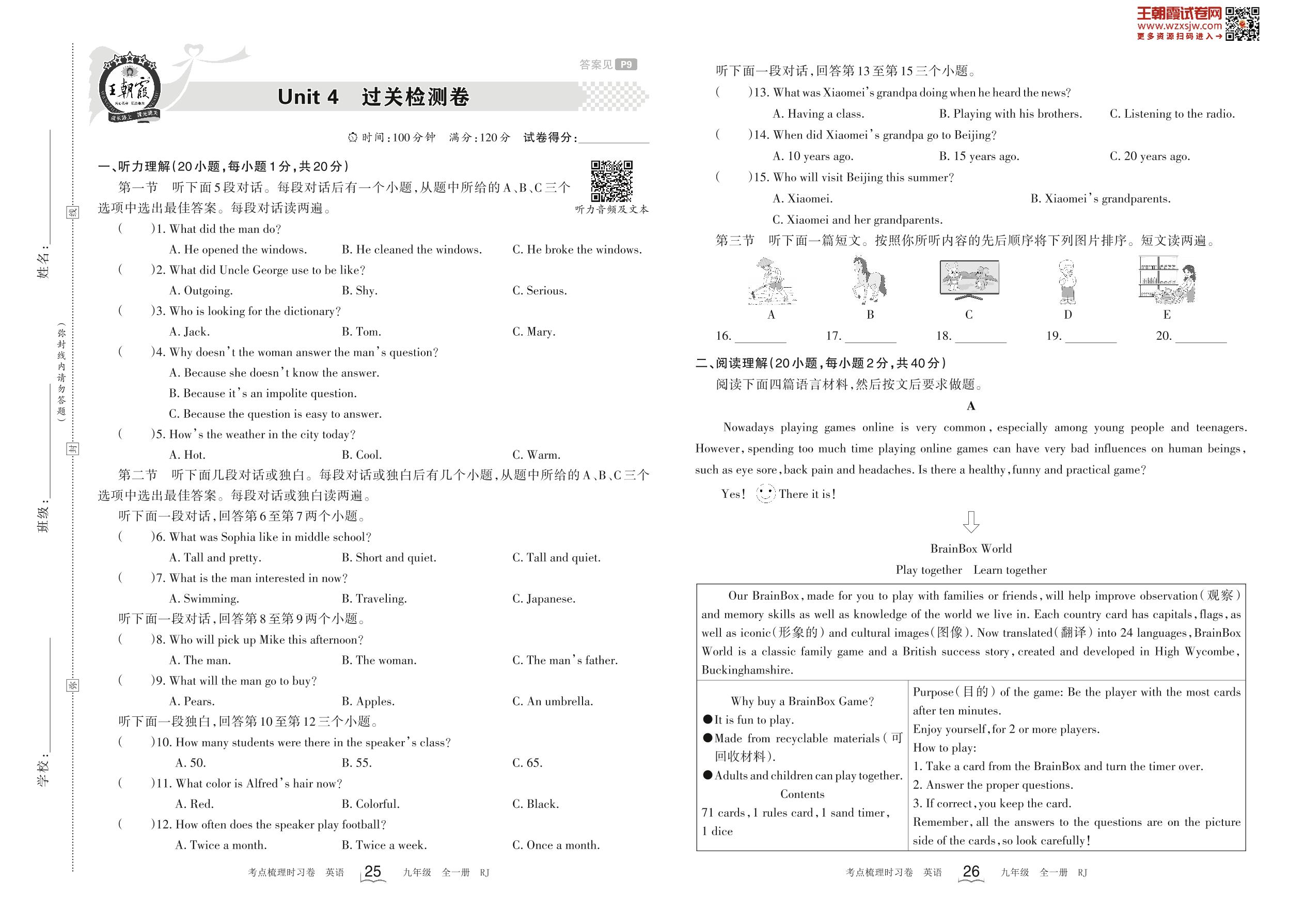 2023-2024学年九年级英语人教版 Unit 4 过关检测卷