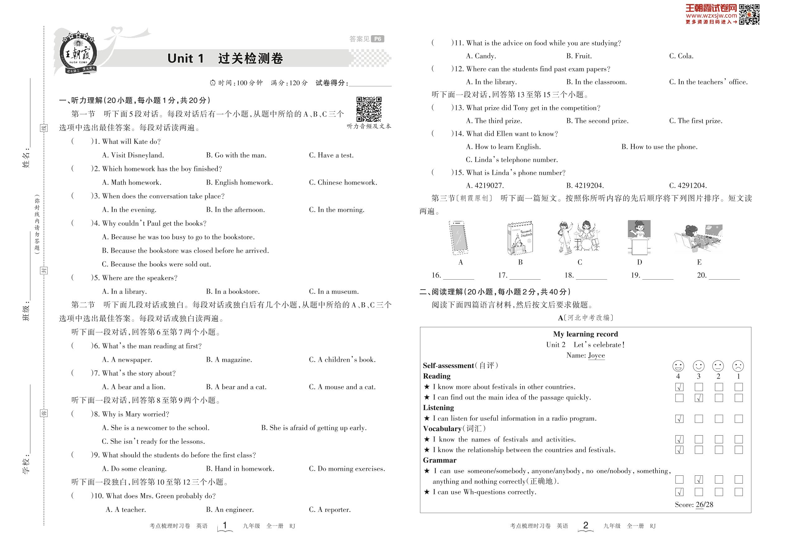 九年级英语人教版全一册单元卷