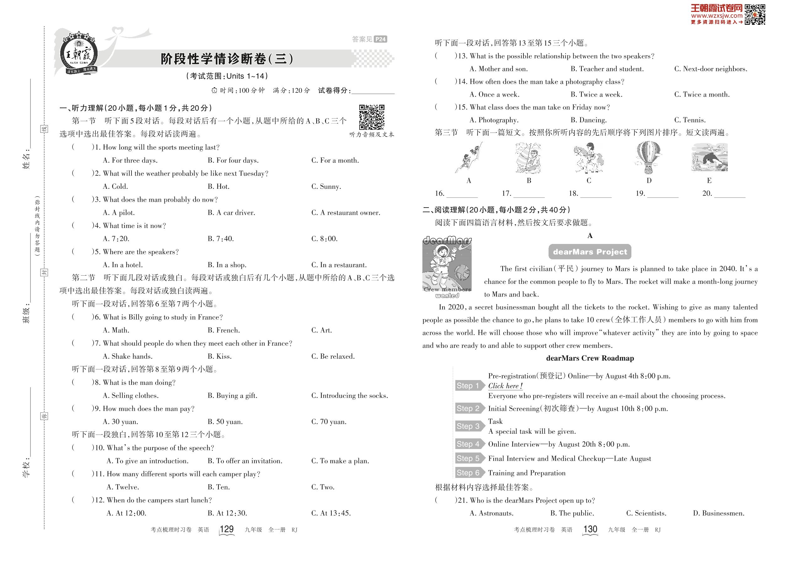 2023-2024学年九年级英语人教版 阶段性学情诊断卷(三)