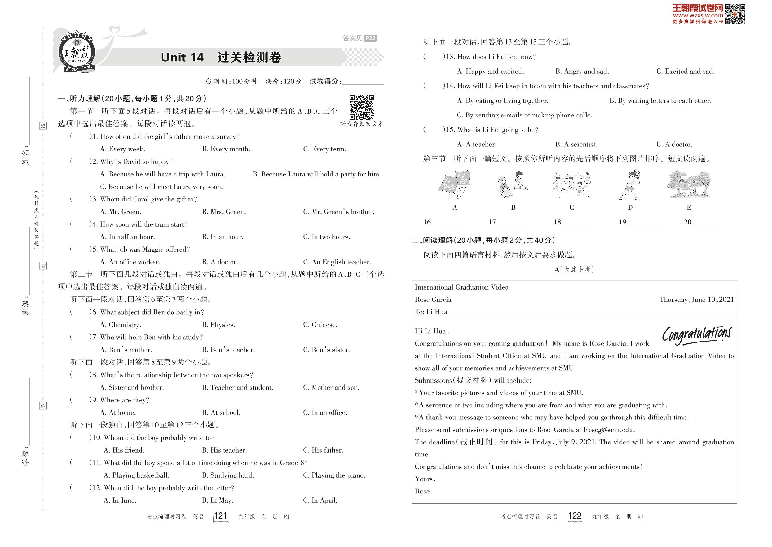2023-2024学年九年级英语人教版 Unit 14 过关检测卷