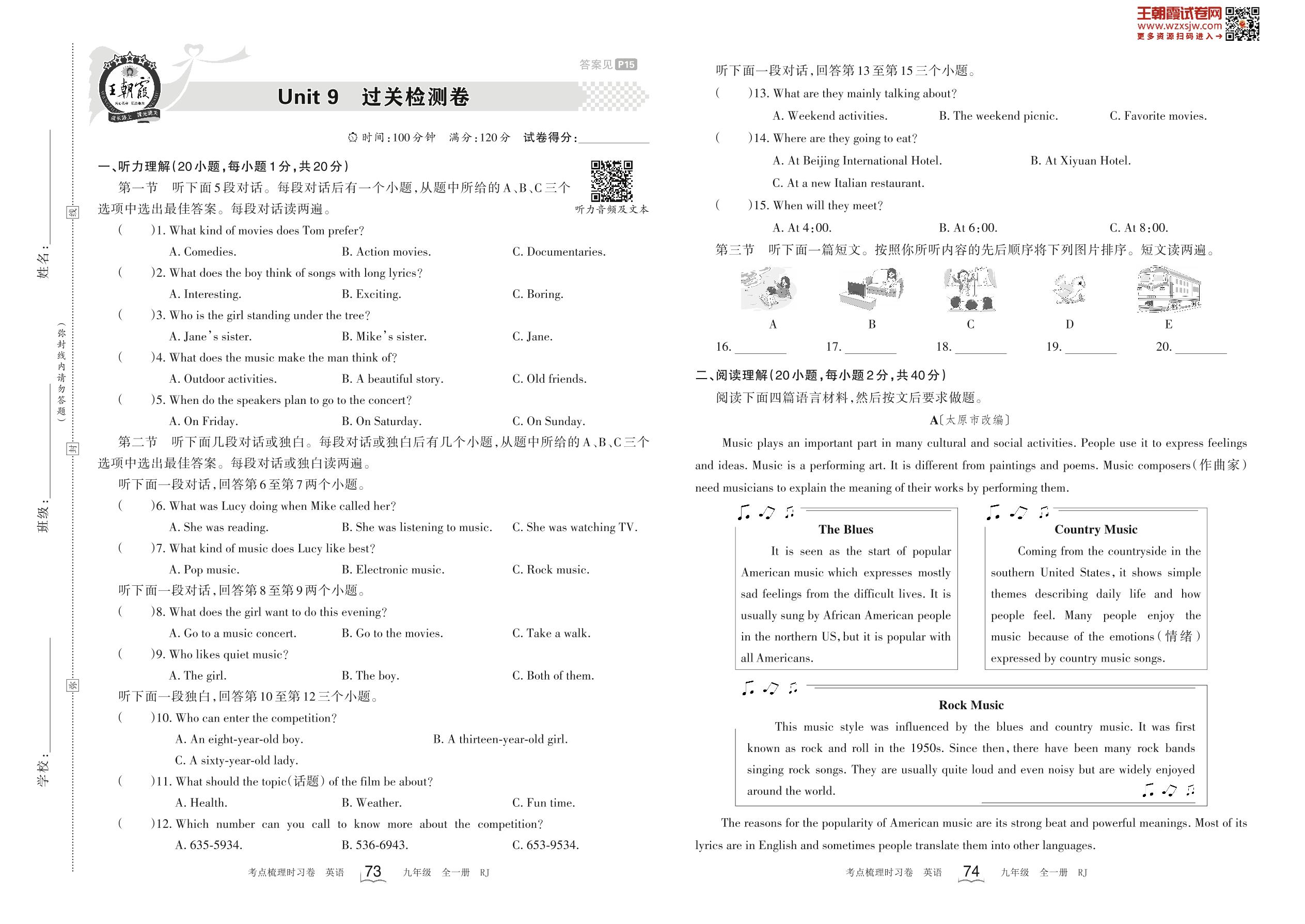 九年级英语人教版全一册单元卷