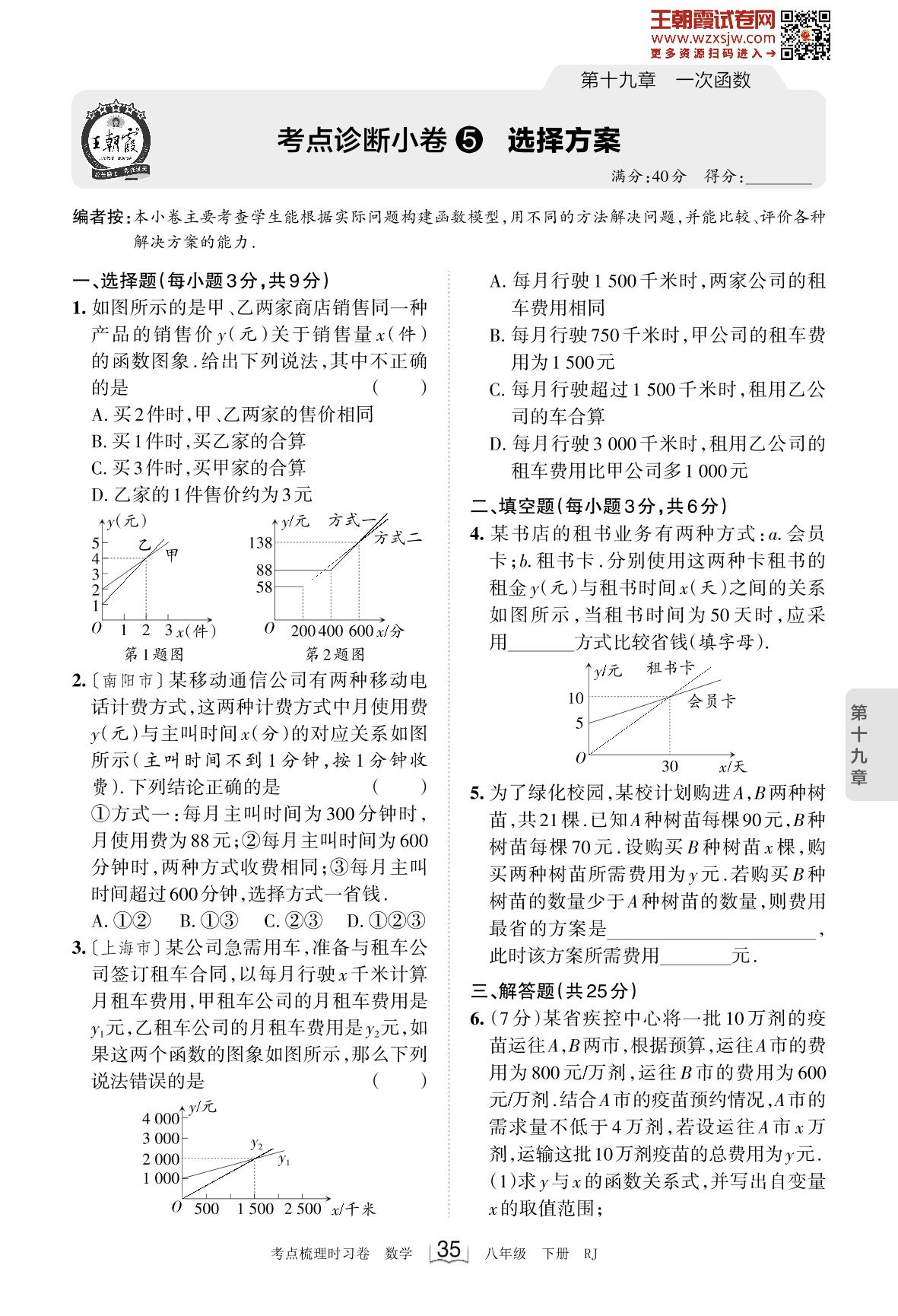 2023下册八年级数学人教版 第十九章 考点诊断小卷5 选择方案