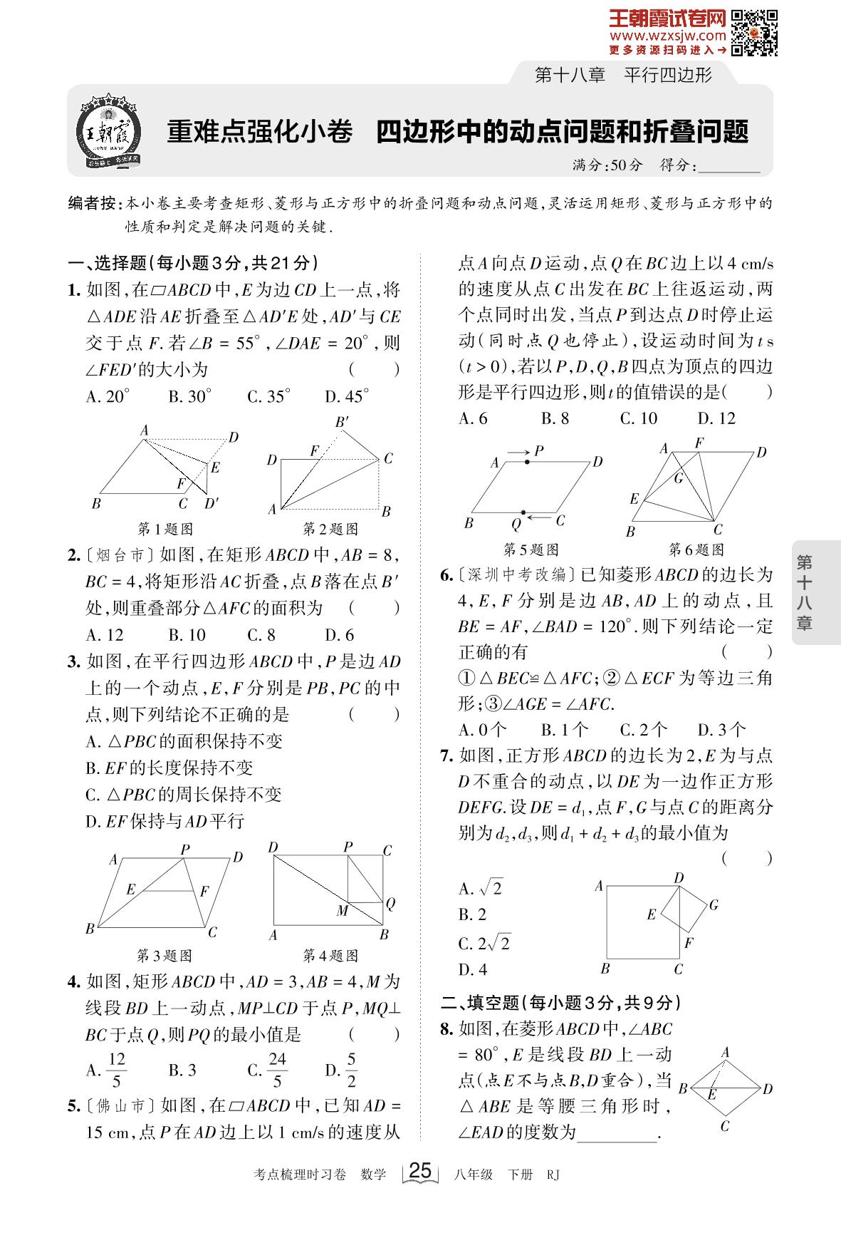 2023下册八年级数学人教版 第十八章 重难点强化小卷 四边形中的动点问题和折叠问题