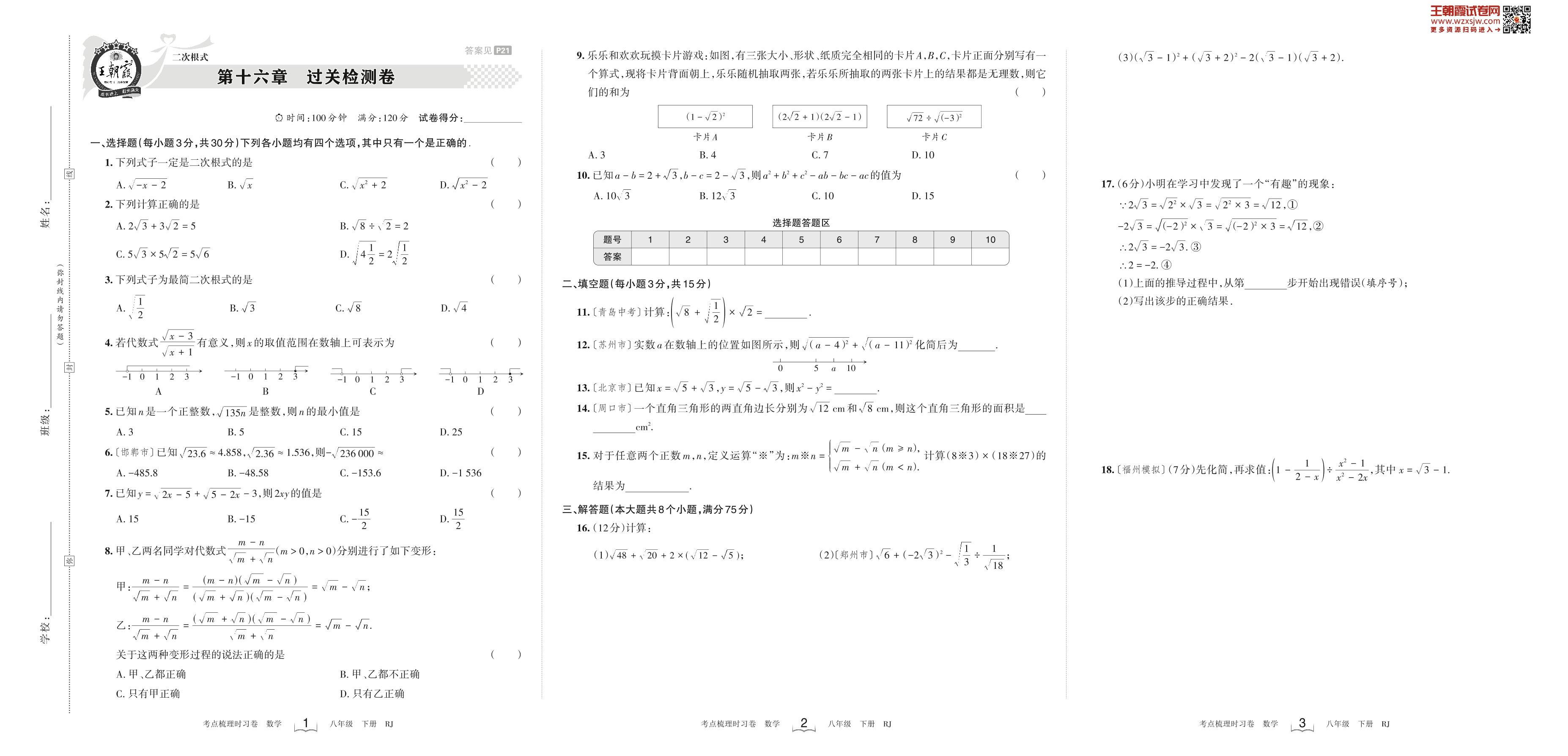 2023下册八年级数学人教版 第十六章 过关检测卷