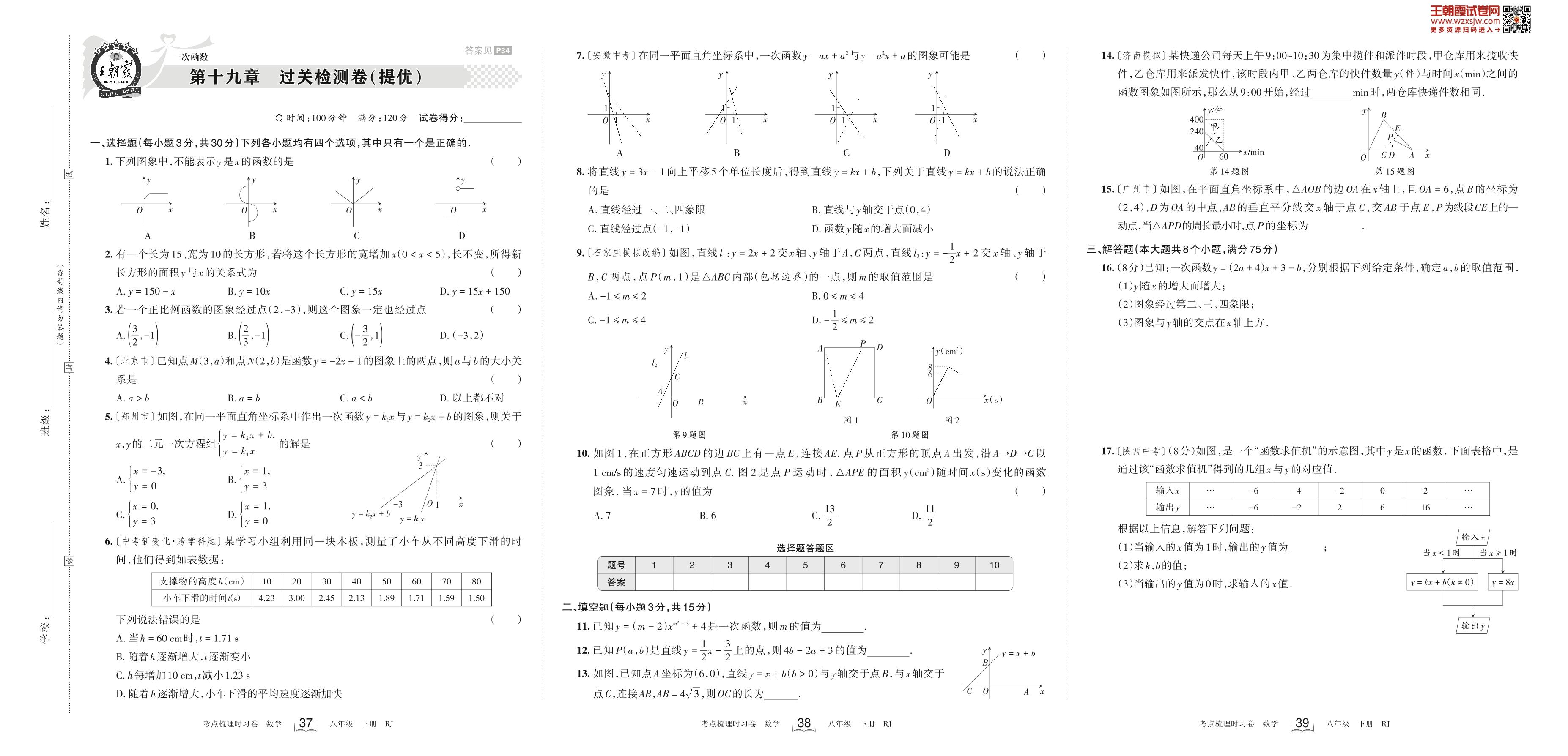 2023下册八年级数学人教版 第十九章 过关检测卷(提优)