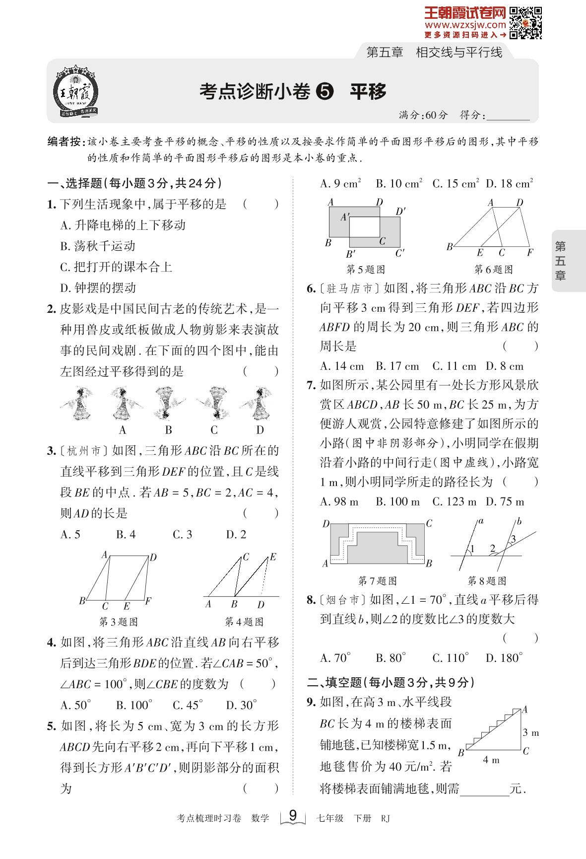 2023下册七年级数学人教版 第五章 考点诊断小卷5 平移