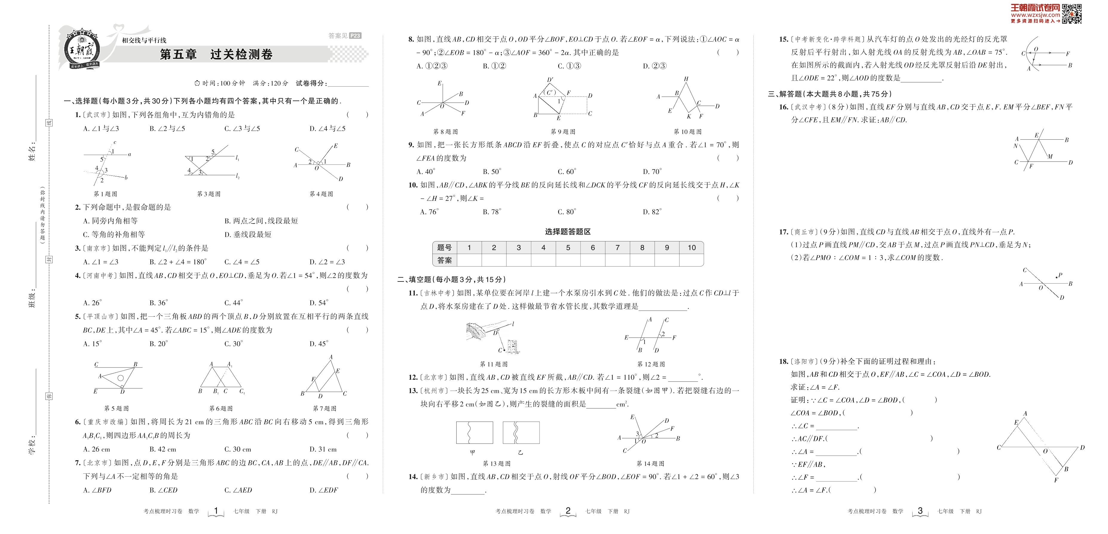 2023下册七年级数学人教版 第五章 过关检测卷