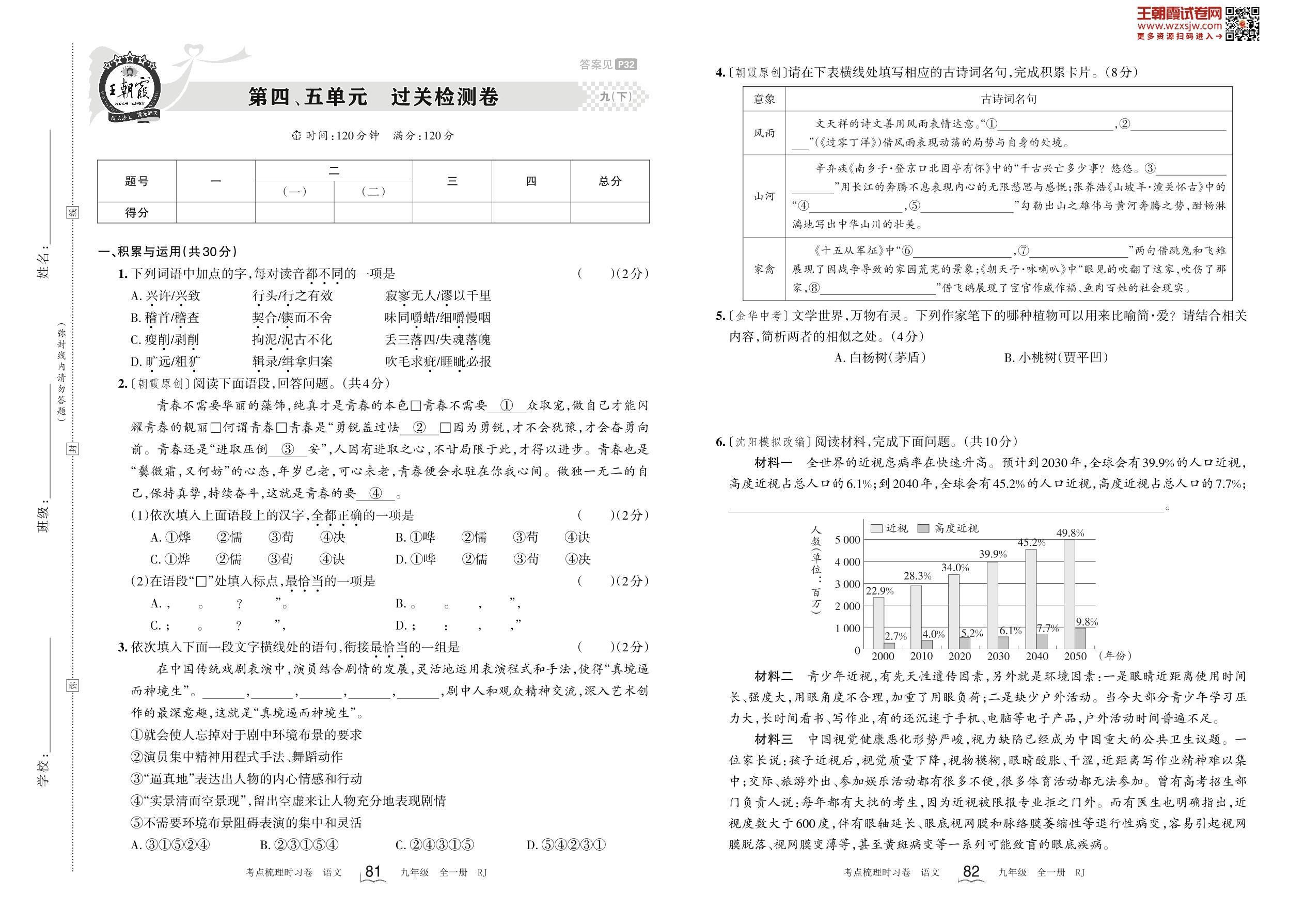 2024下册九年级语文人教版 第四、五单元 过关检测卷(2月版)
