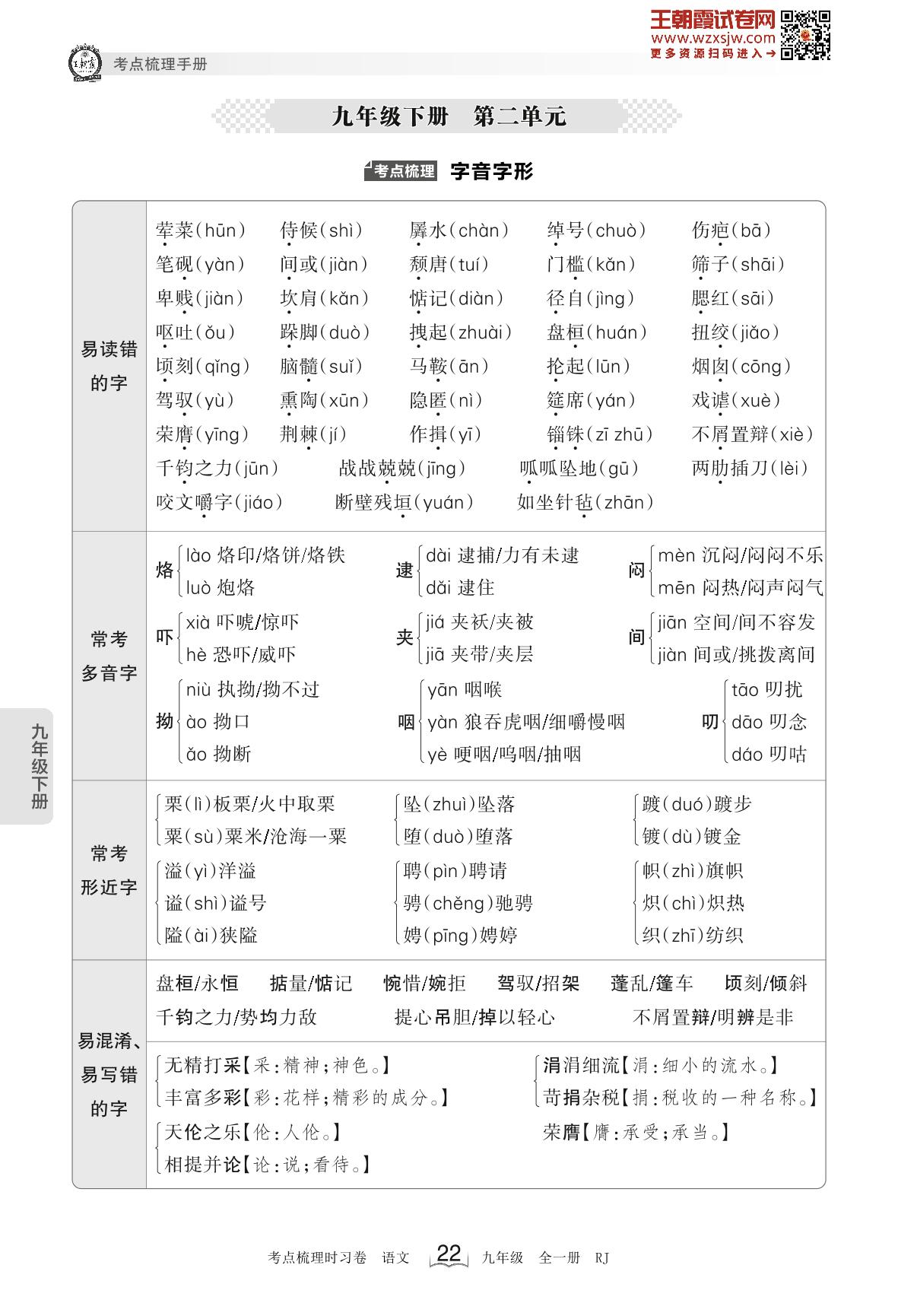 2024下册九年级语文人教版 考点梳理手册——九年级下册 第二单元(2月版)
