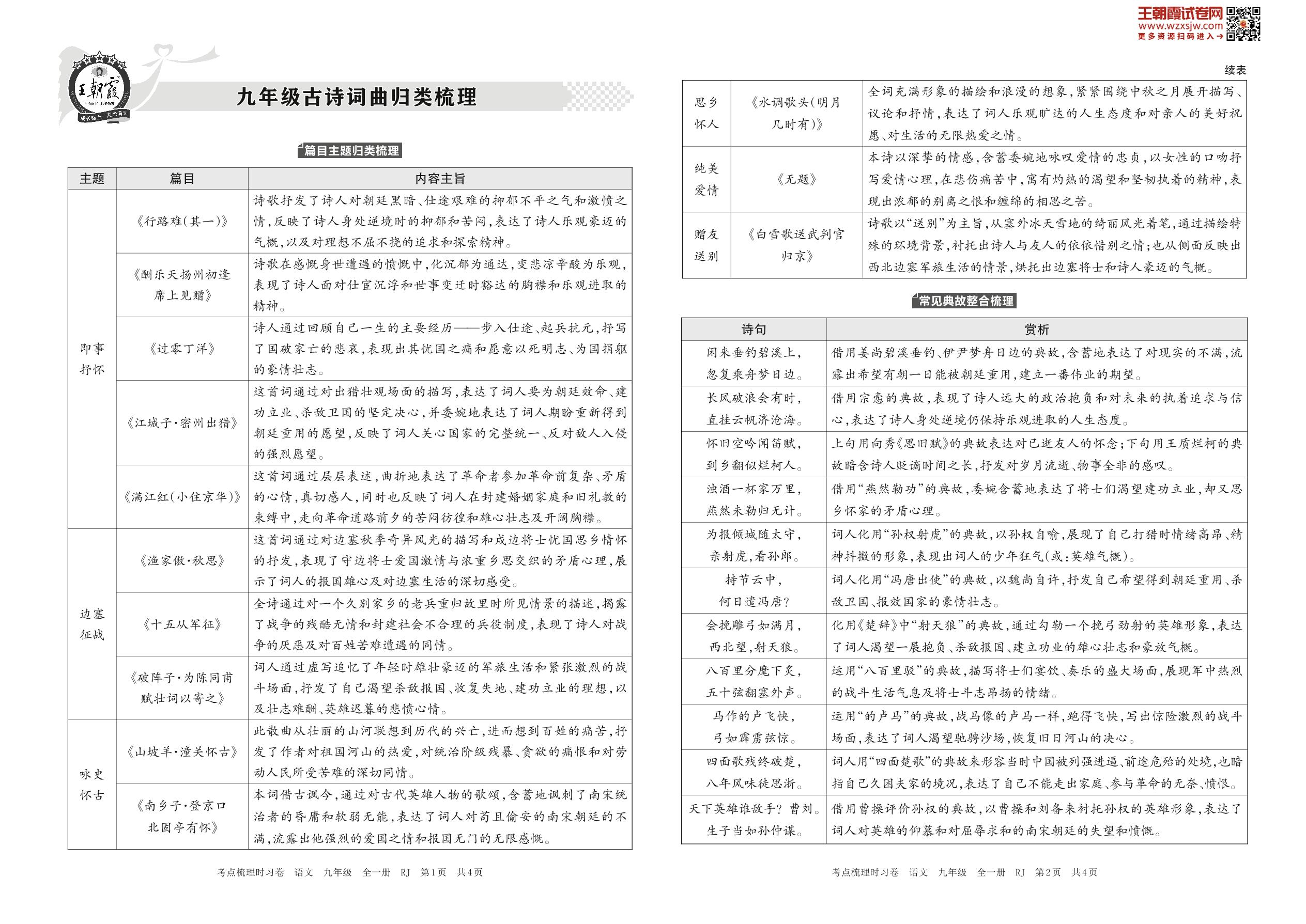 2023-2024学年九年级语文人教版 九年级古诗词曲归类梳理(2月版)