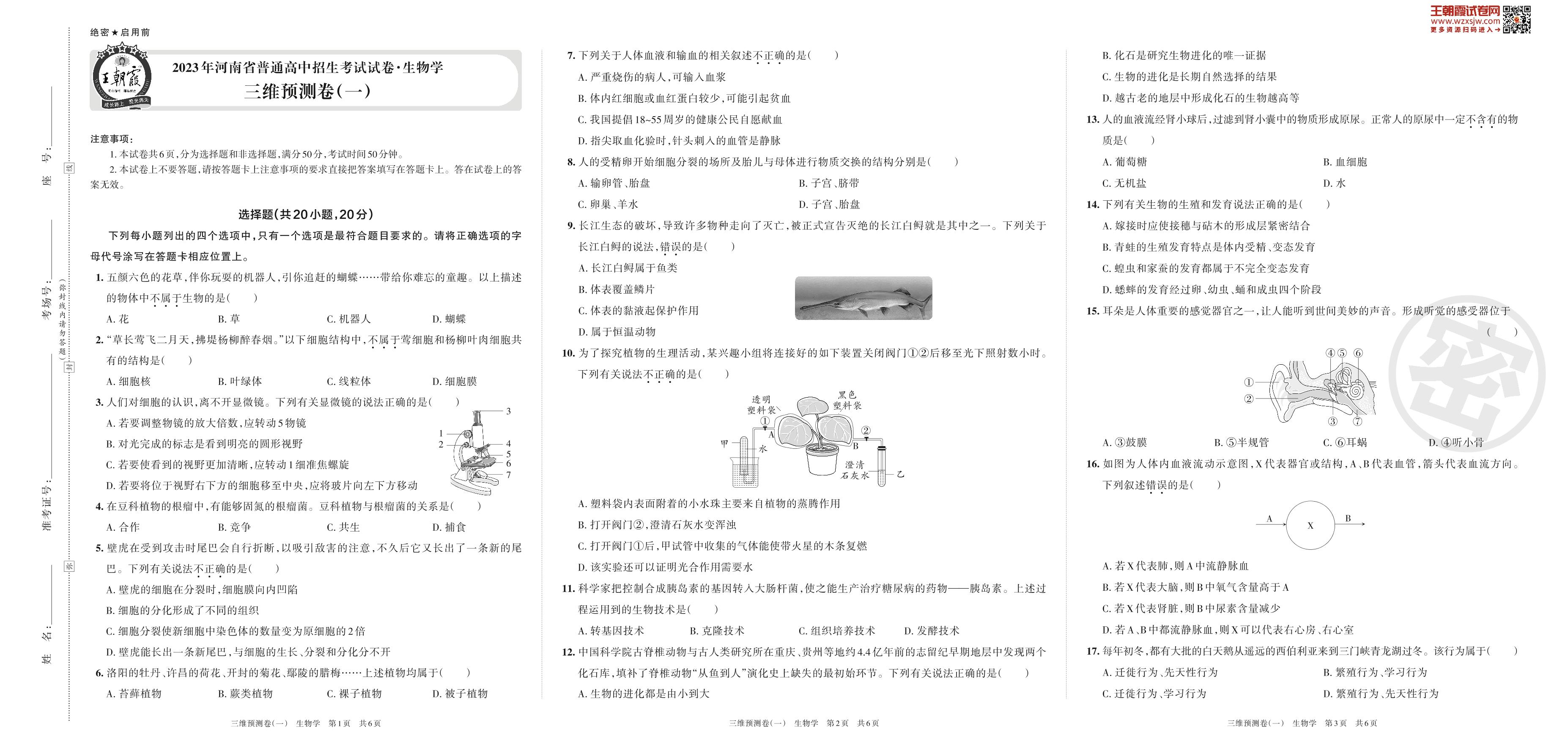 2023年河南省普通高中招生考试试卷·生物学 三维预测卷(一)