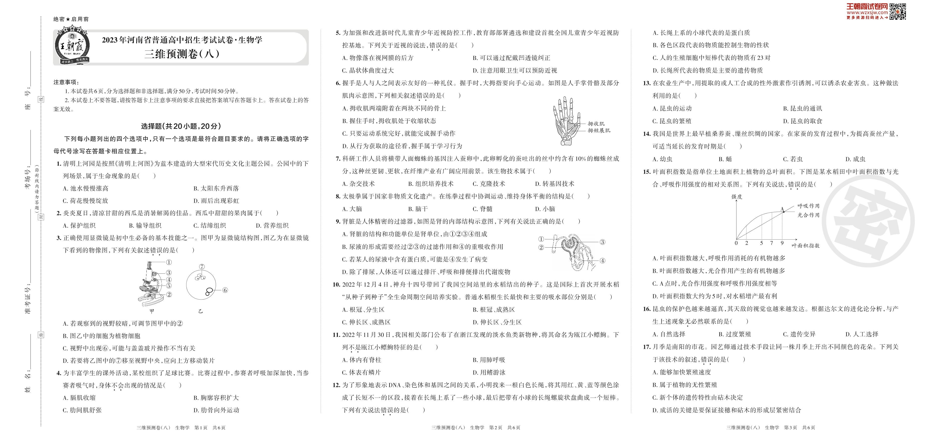 2023年河南省普通高中招生考试试卷·生物学 三维预测卷(八)