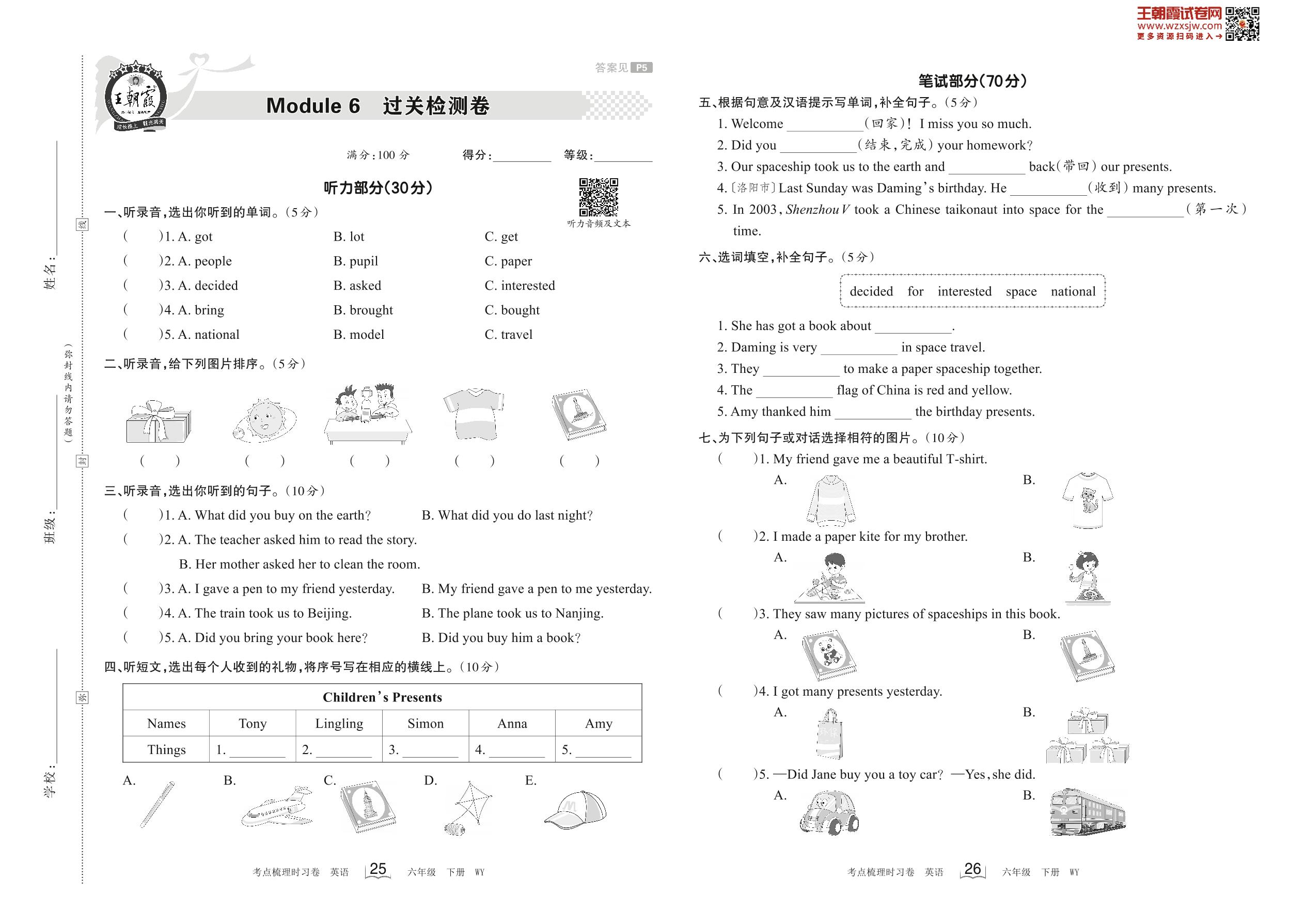 2023下册六年级英语外研版 Module 6 过关检测卷