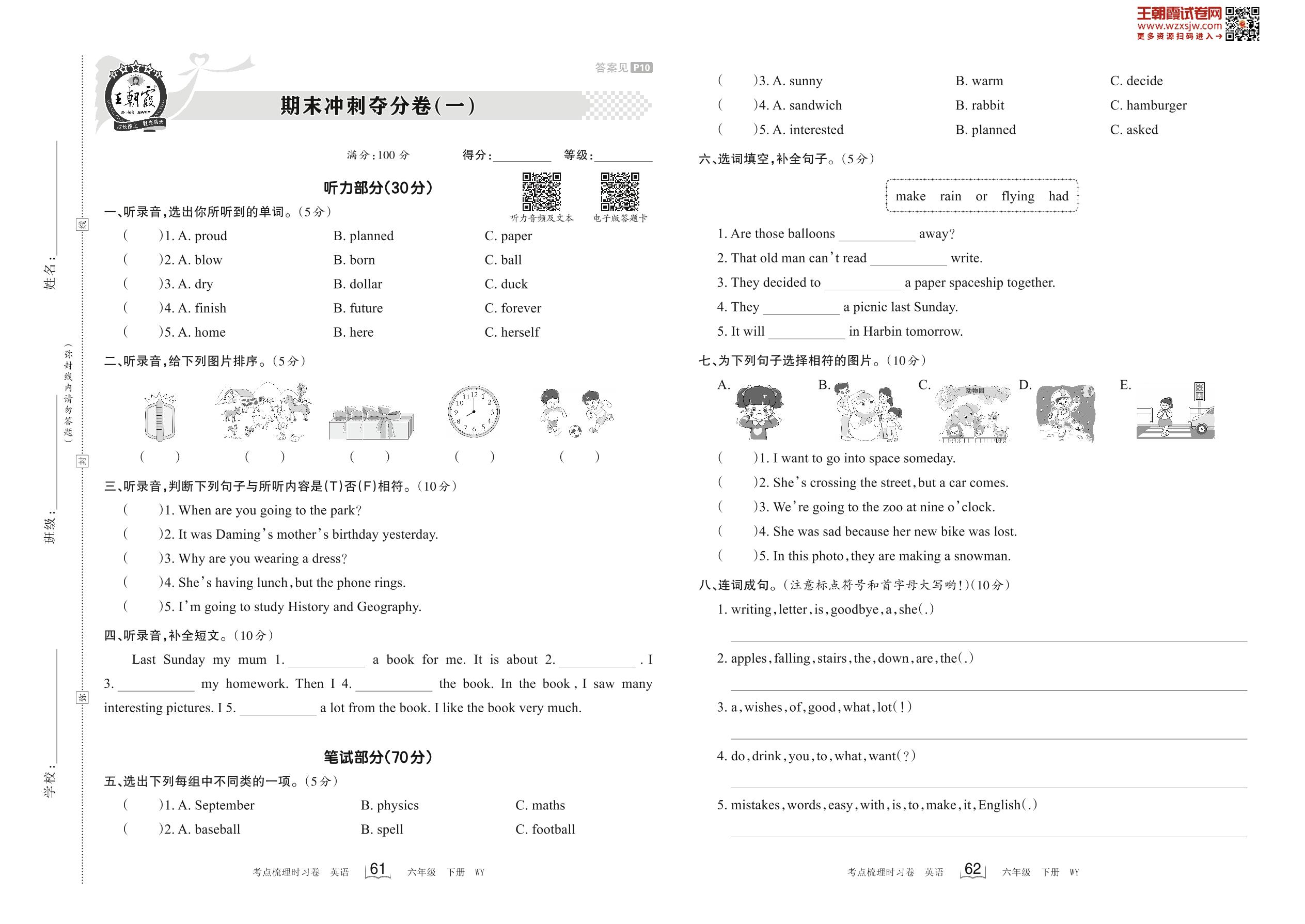 2023下册六年级英语外研版 期末冲刺夺分卷(一)