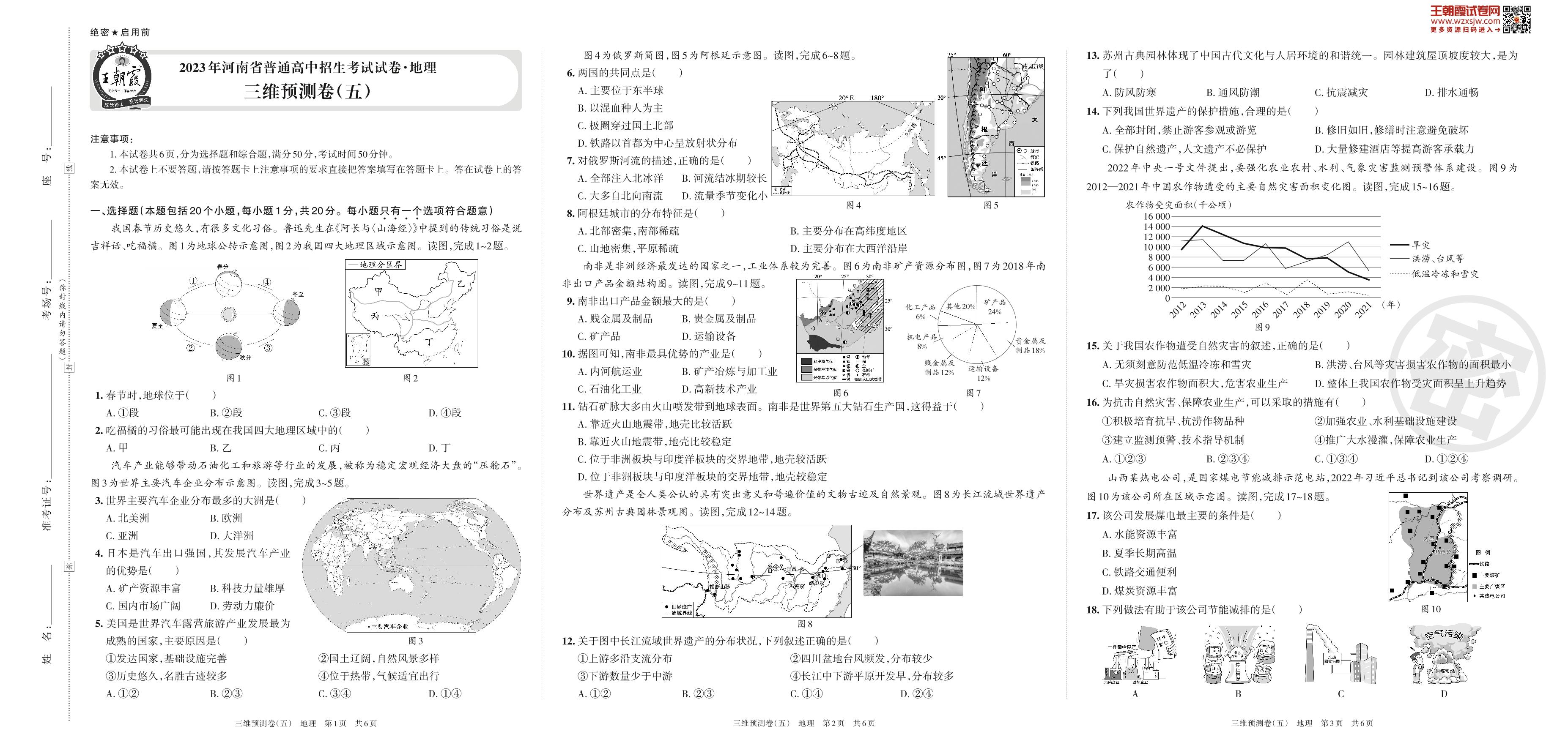 2023年河南省普通高中招生考试试卷·地理 三维预测卷(五)