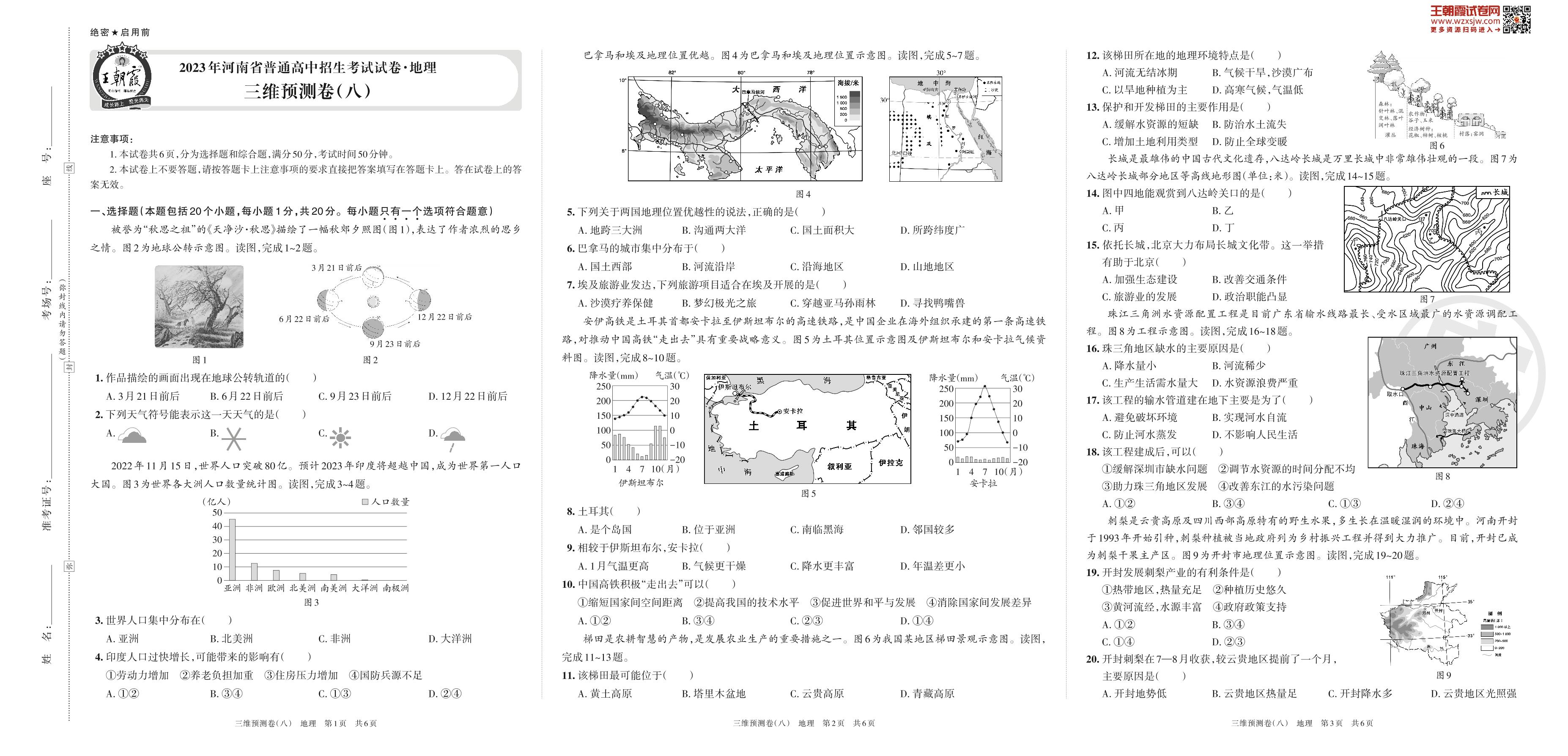 2023年河南省普通高中招生考试试卷·地理 三维预测卷(八)