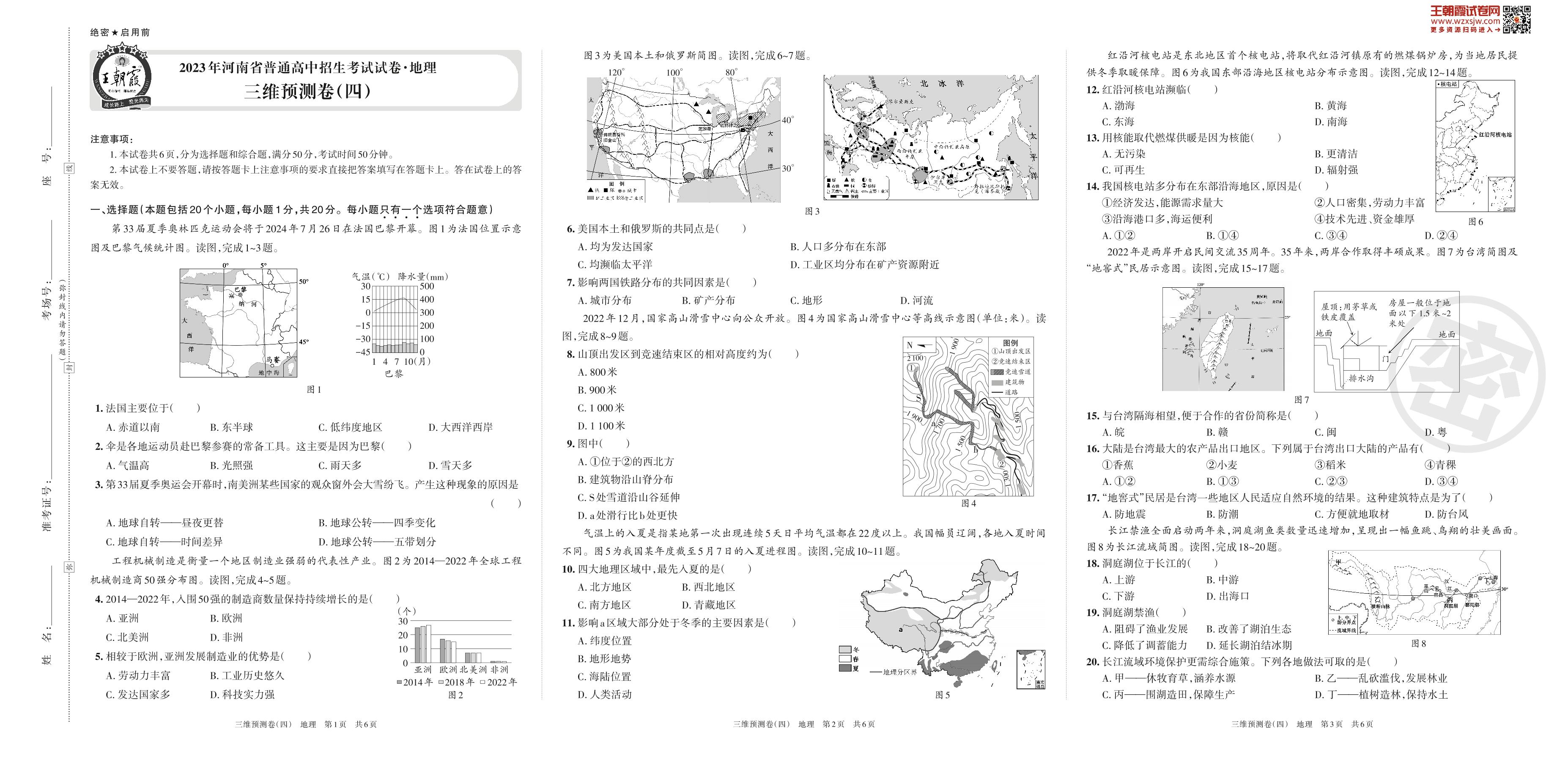 2023年河南省普通高中招生考试试卷·地理 三维预测卷(四)