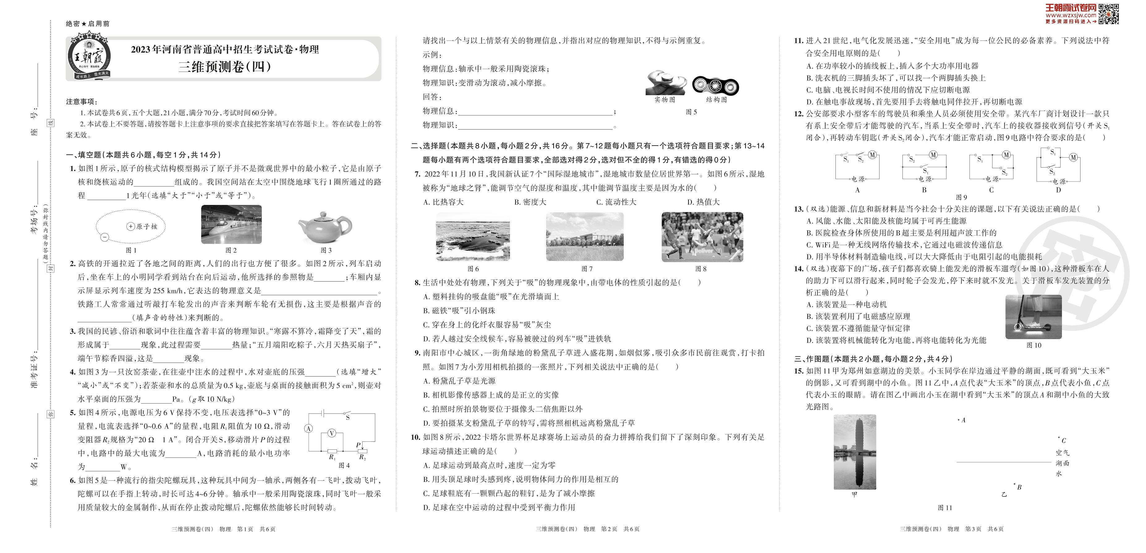 2023年河南省普通高中招生考试试卷·物理 三维预测卷(四)