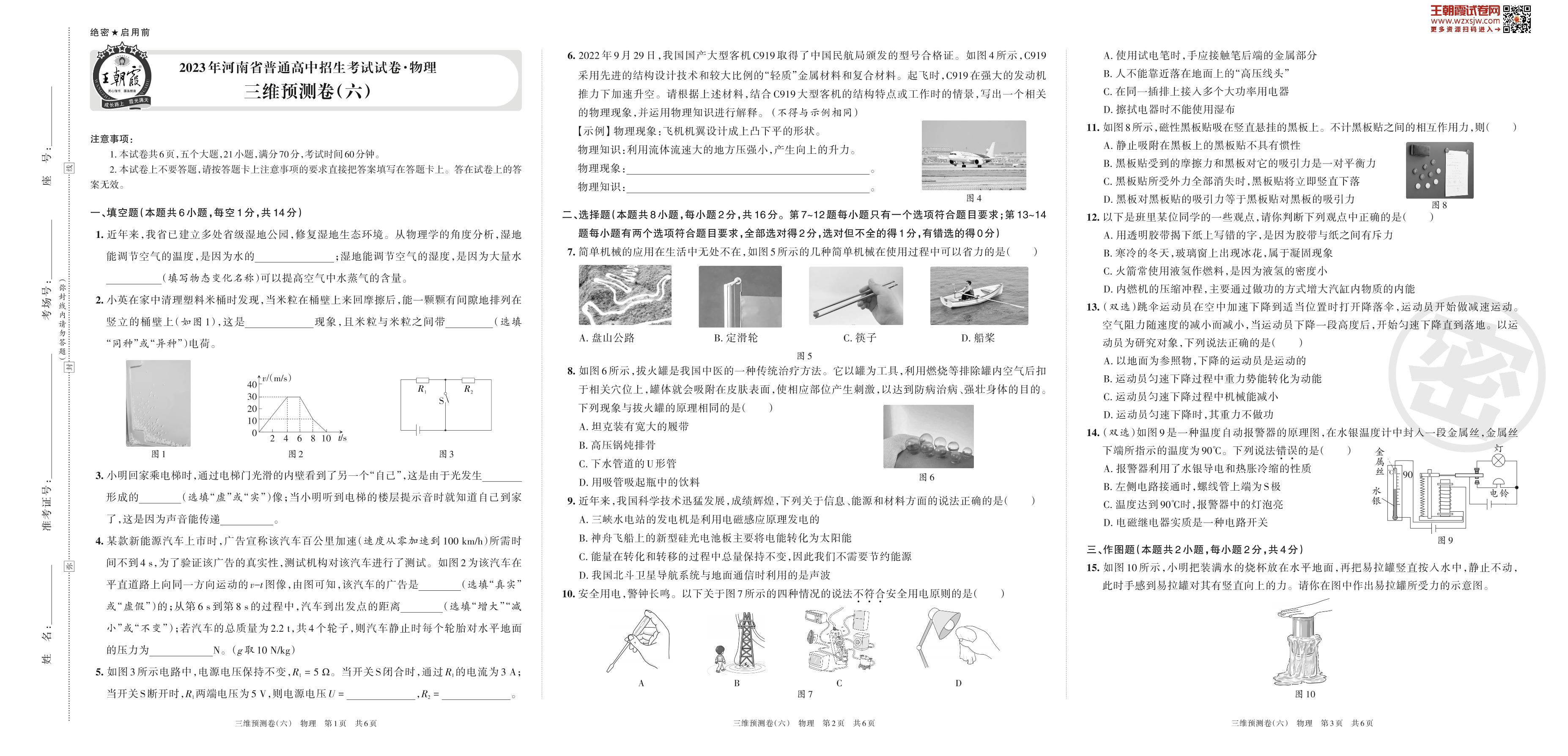 2023年河南省普通高中招生考试试卷·物理 三维预测卷(六)