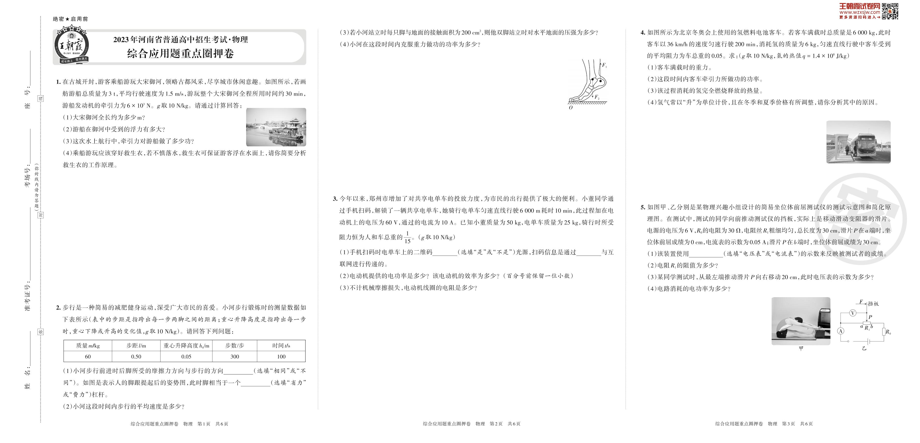 2023年河南省普通高中招生考试·物理 综合应用题重点圈押卷