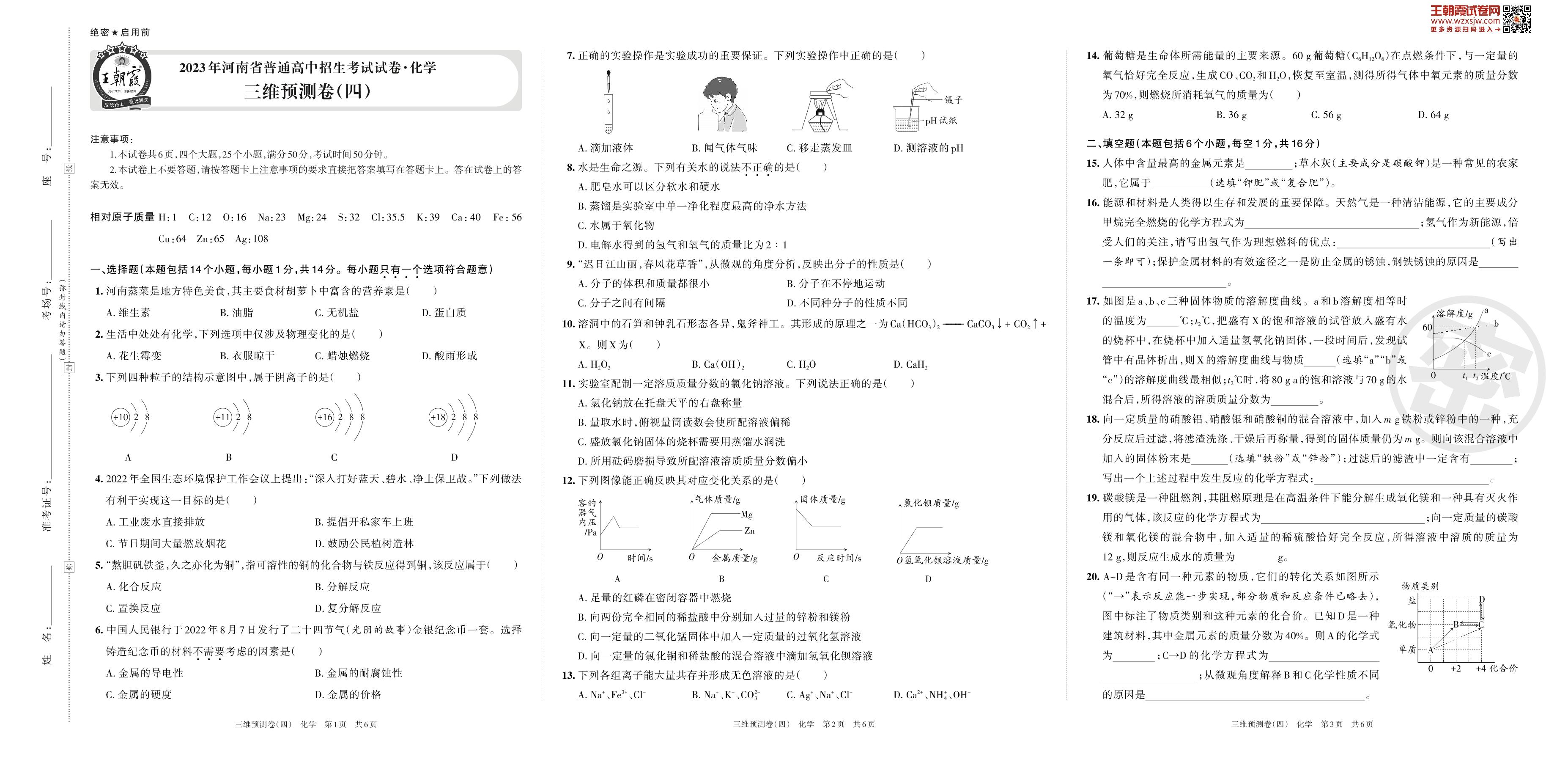 2023年河南省普通高中招生考试试卷·化学 三维预测卷(四)