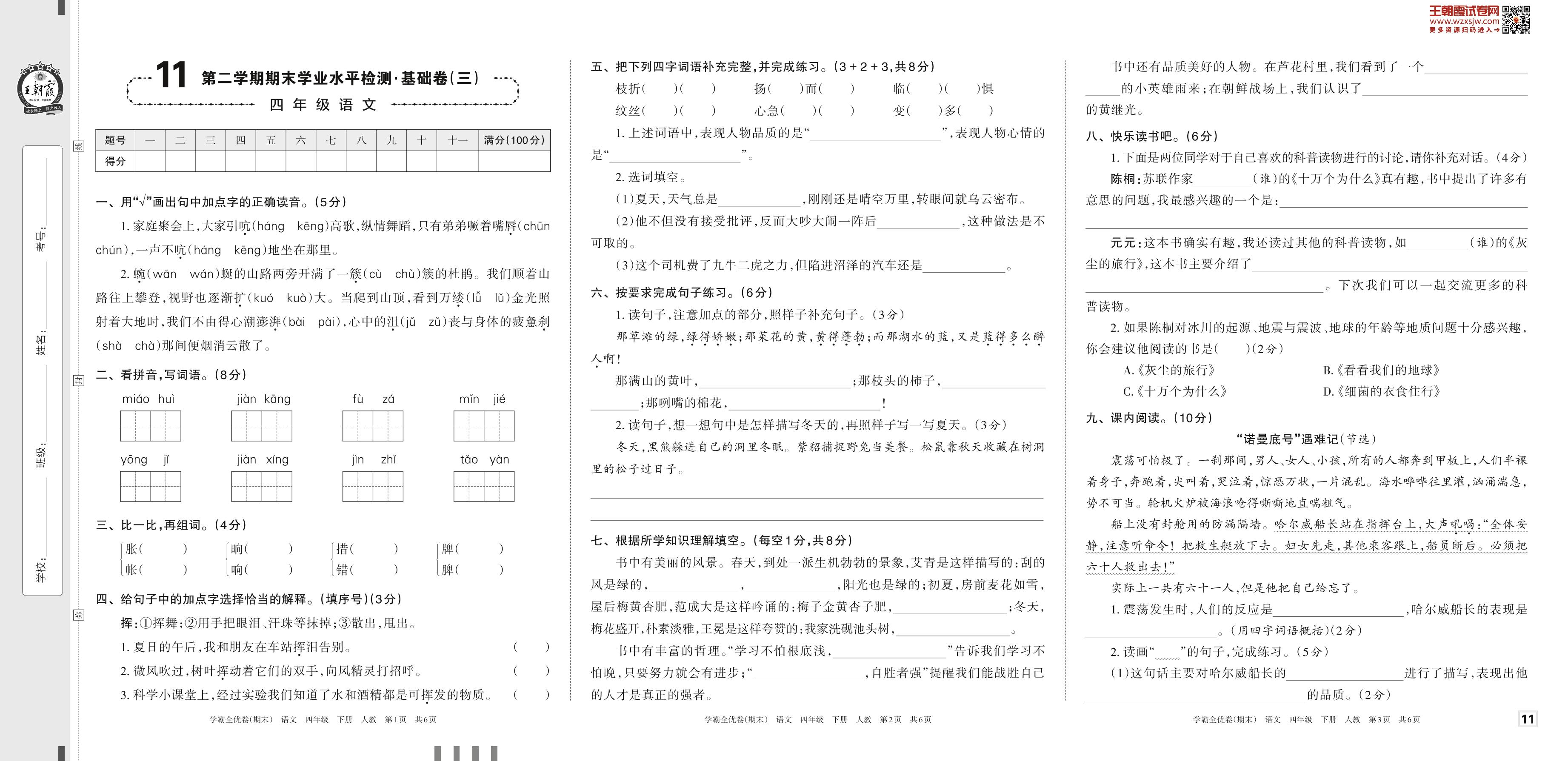四年级语文人教版下册期末卷