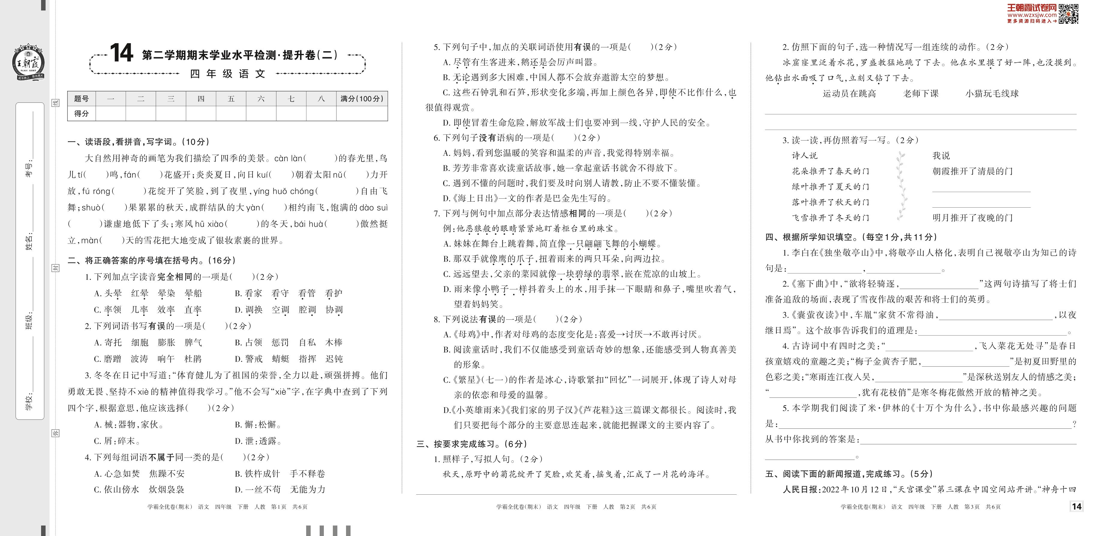 四年级语文人教版下册期末卷
