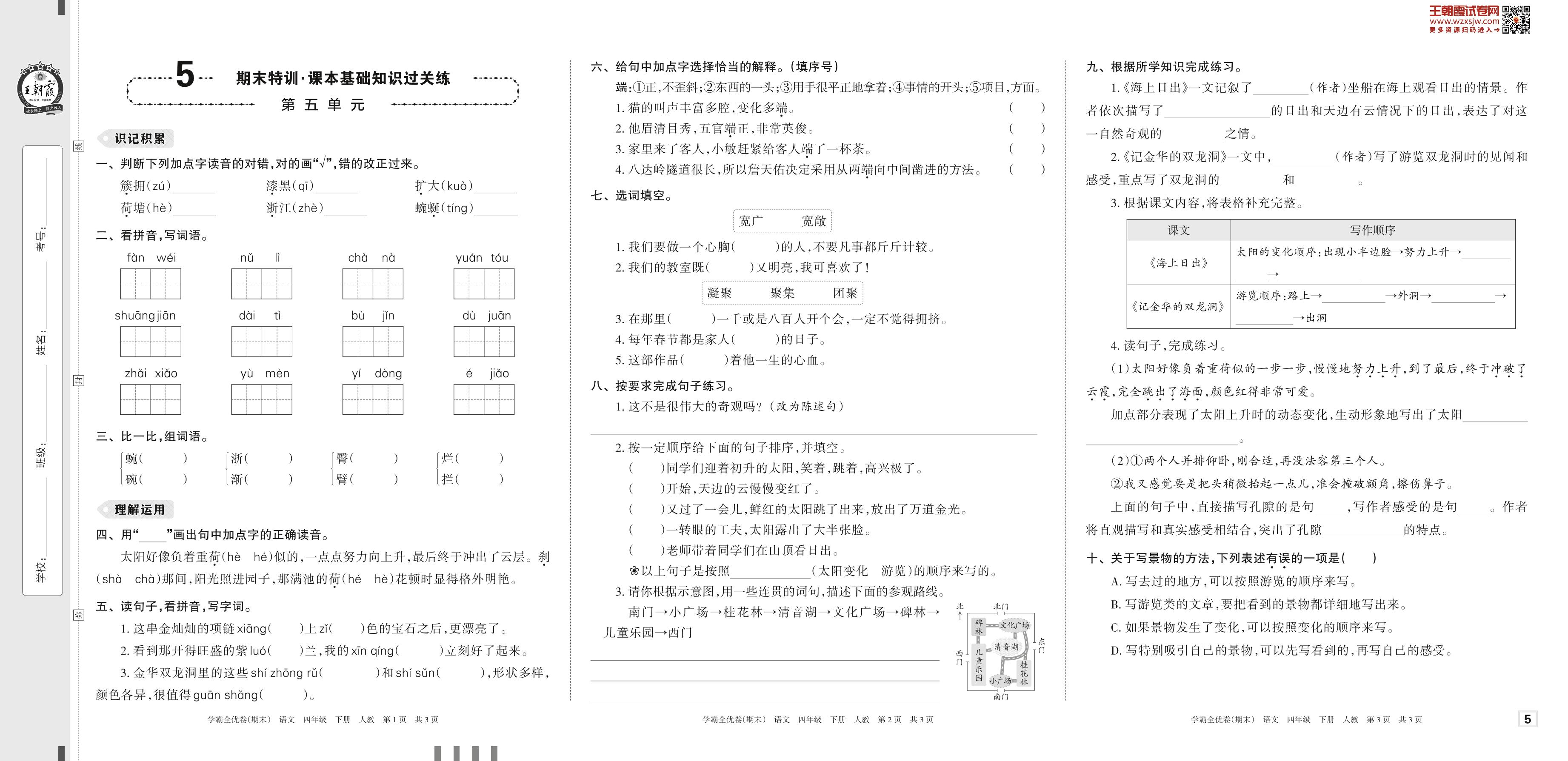 2023下册四年级语文人教版 5 期末特训·课本基础知识过关练——第五单元