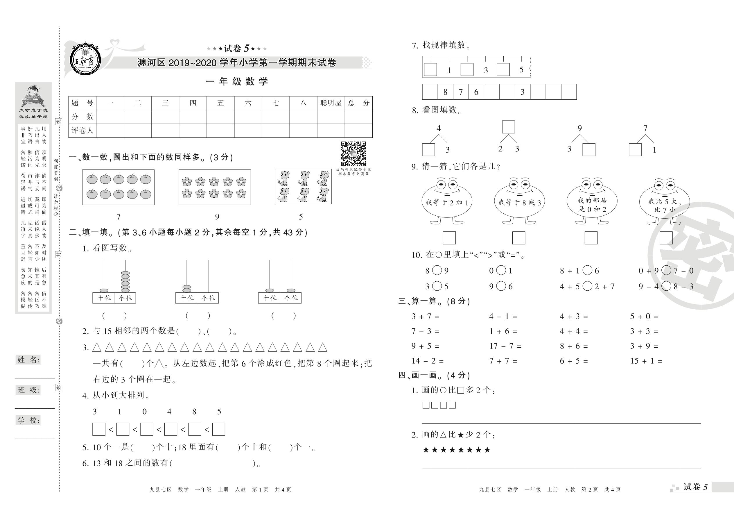 2019-2020学年第一学期洛阳市瀍河区一年级数学试卷(人教版)【5】